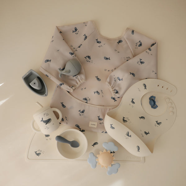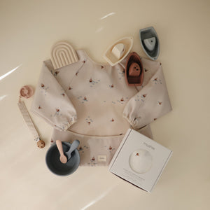 Keep the kids clean at mealtimes, during art projects or in other messy moments with our water resistant long sleeve bib. Its wide pocket easily catches food while the bib stays secure and fully covers outfits. With a velcro closure at the back of the neck, it's perfectly sized for littles between 6 and 24 months. Parents appreciate the wipe-clean material that's also safe for washing machines, so you can embrace the day without clothing stains.