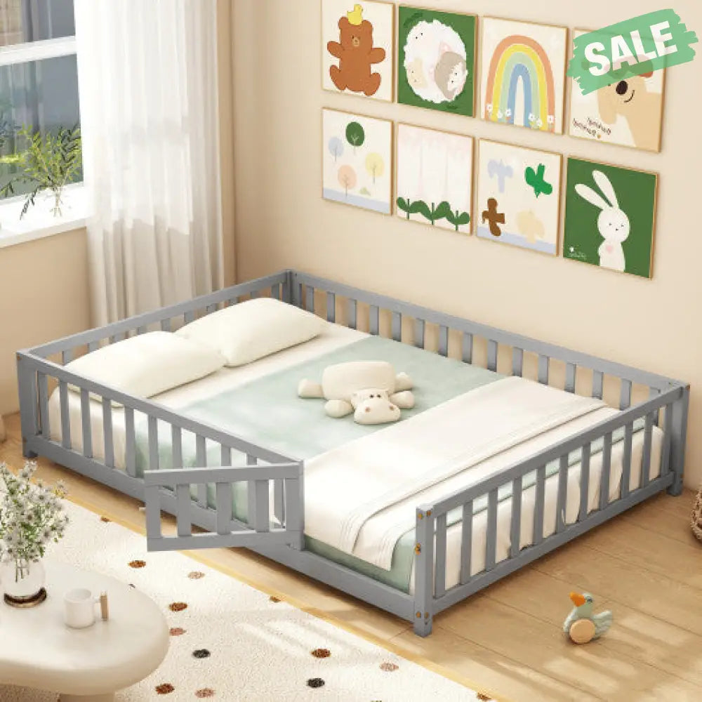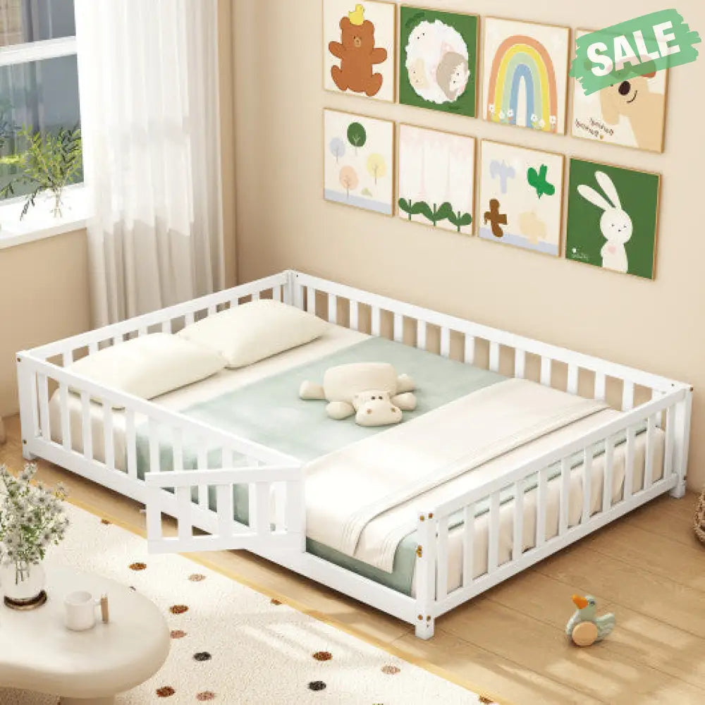 ● Safe Playpen: The Montessori bed features 13.5" full-length guardrails for a safe sleeping environment. Moreover the safety door with latch provides added security and peace of mind for parents of young children.