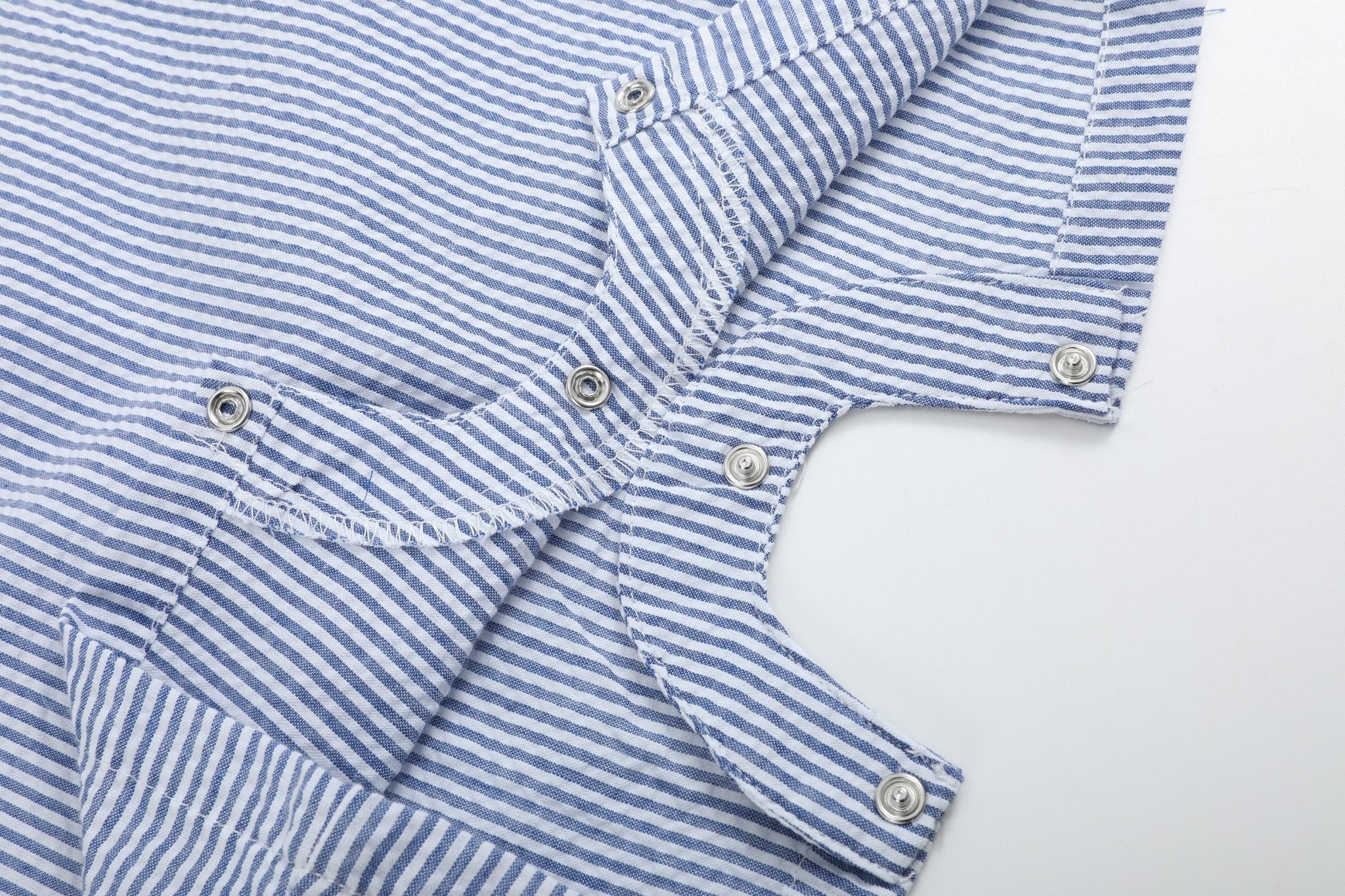 Hit a home run with these adorable Blue Seersucker Baseball Smocked Shortalls! Perfect for little baseball fans, this outfit features classic smocking across the chest with embroidered baseballs and bats. The lightweight blue seersucker fabric keeps your baby boy cool and comfortable on warm days, while the snaps at the crotch make diaper changes quick and easy. Adjustable shoulder buttons provide two size options for a perfect fit as he grows. Ideal for game days, playdates, or summer outings, this sweet one-piece is available in sizes 3–6M to 2T.