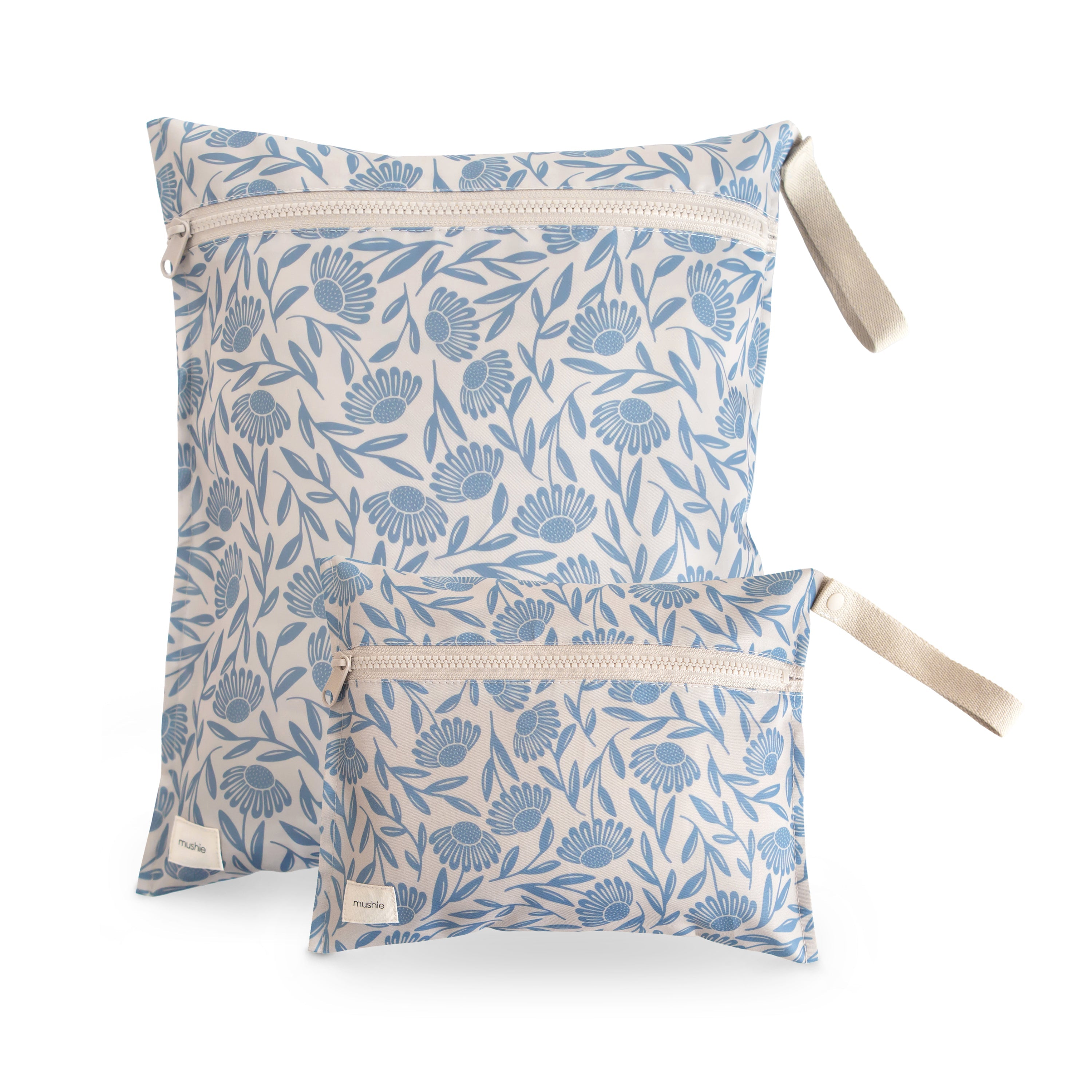 Whether dealing with wet swimsuits or dirty clothes, parents can be prepared for any adventures that come their little’s way with a set of Mushie wet bags. Featuring a zipper closure and machine washable, water resistant material, our wet bags were designed to help tackle messy situations on the go. The handles include a snap closure to easily hang or attach to a stroller. Each set offers two different sizes, making these a convenient storage solution to include in a diaper bag or school bag.