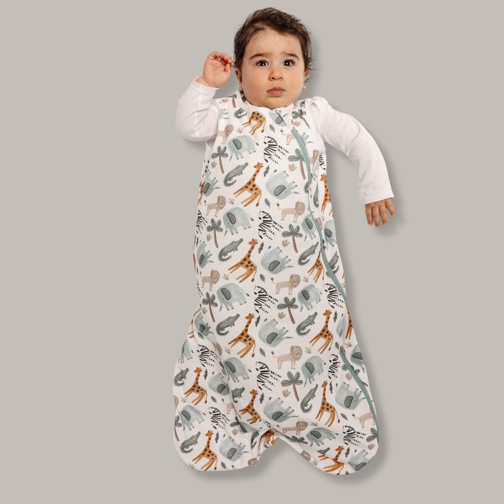 100% Organic Cotton 1.0 Tog Sleeping Bag with Legs Sleeveless Wearable Blanket- Green Feather
