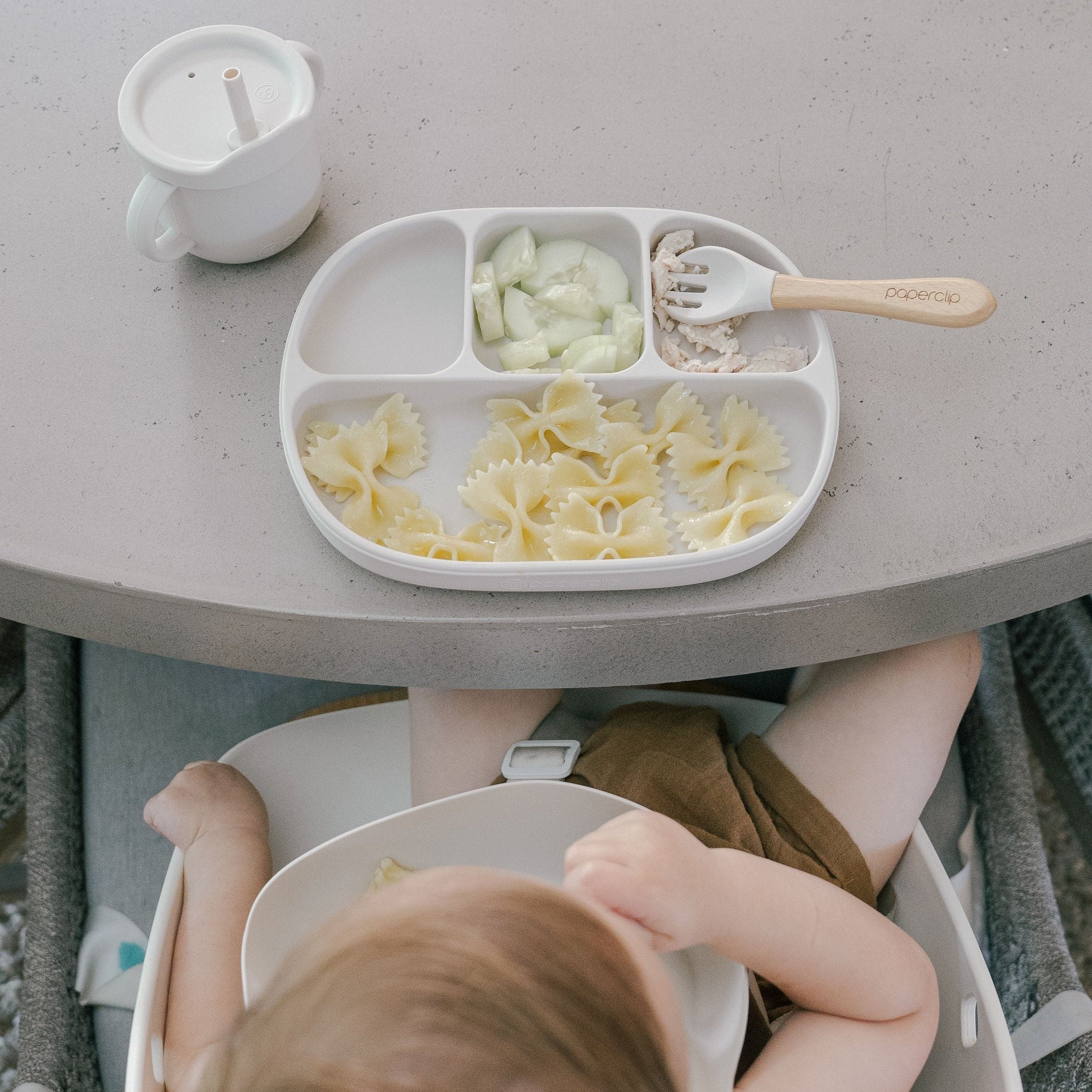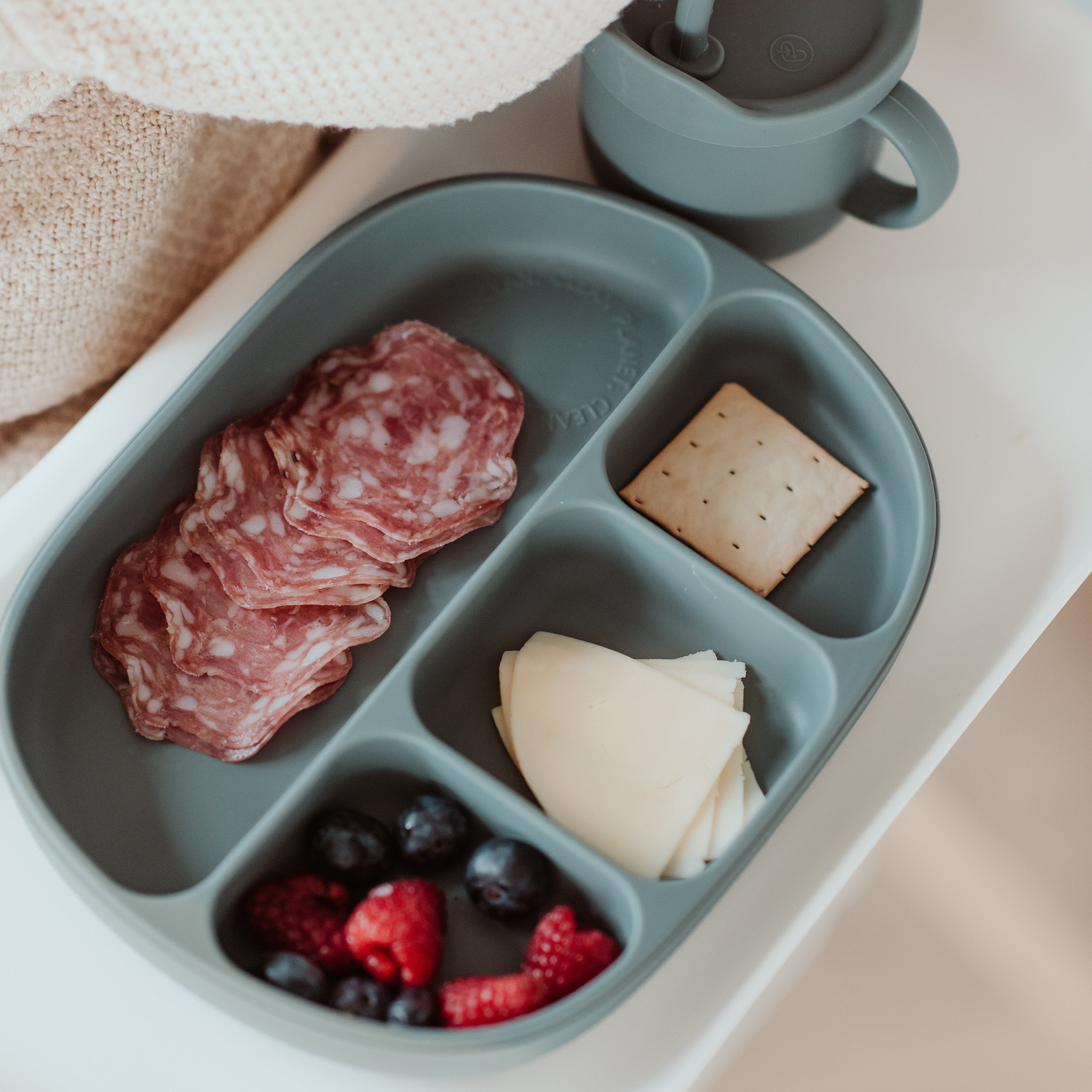 Crafted from durable, non-toxic silicone with a powerful suction base, the Silicone Sectioned Plate features 4 divided compartments—making it easy to serve a well-balanced meal and keep mealtime mess to a minimum.