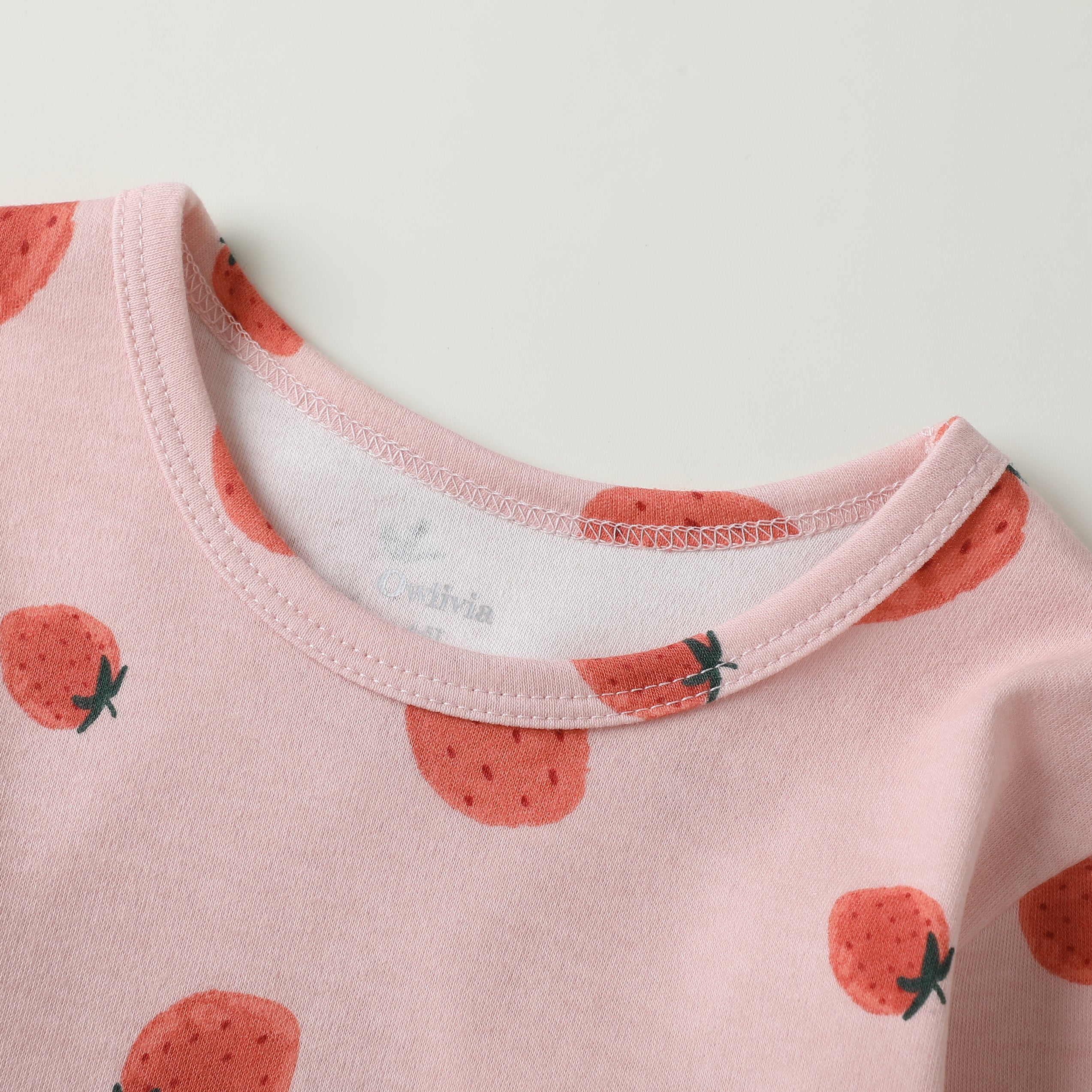 100% Organic Cotton Toddler 2 Piece Pajama Set - Pink Strawberry