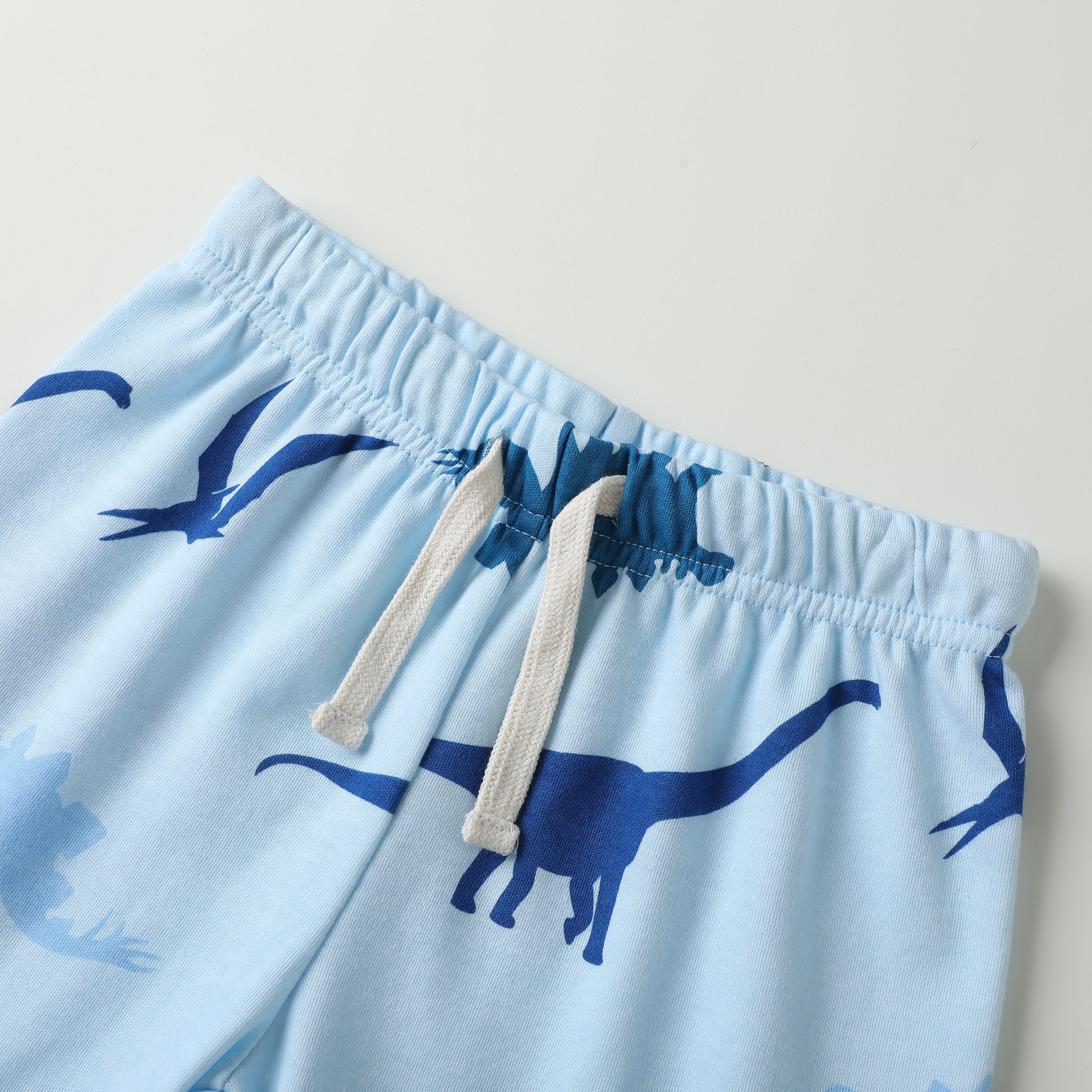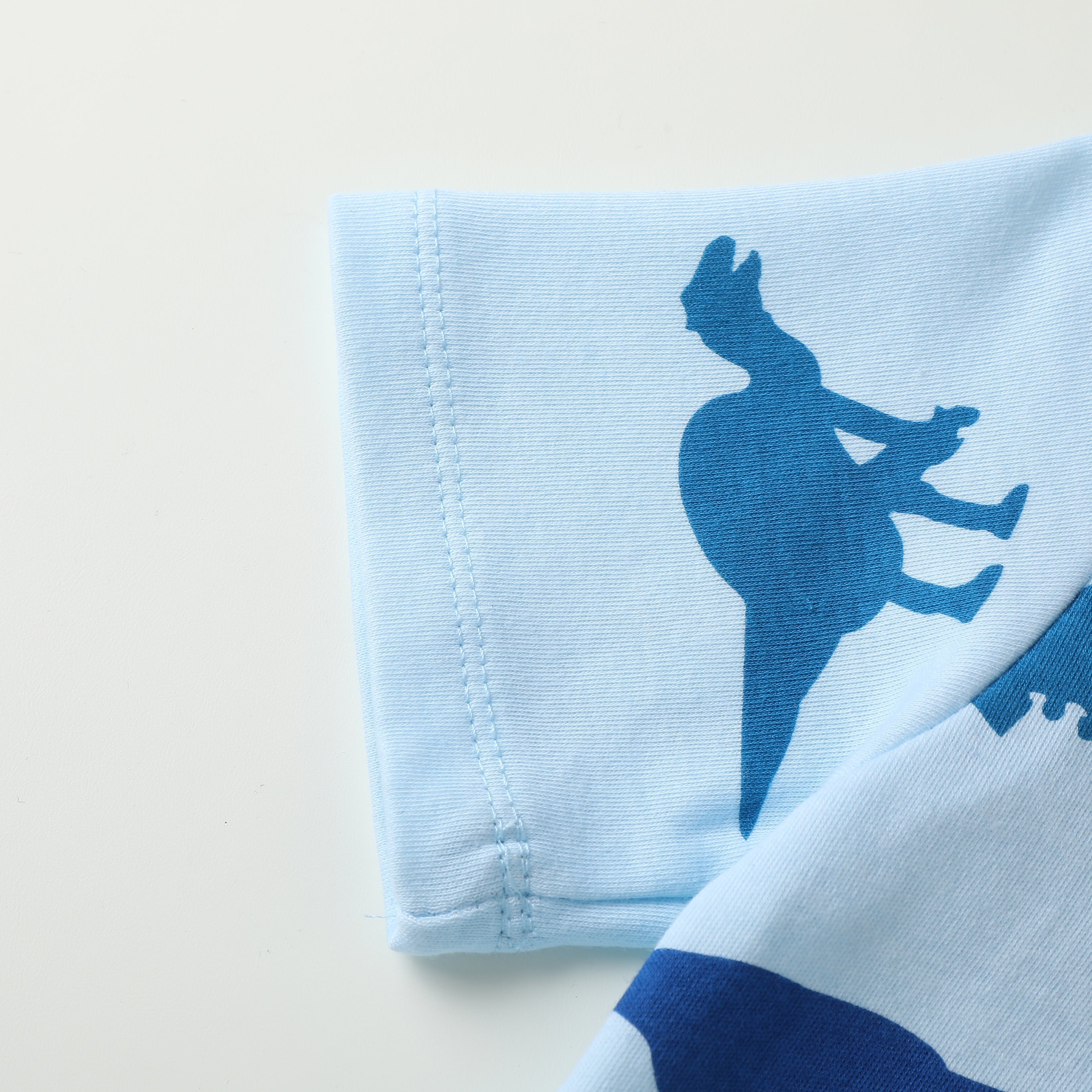100% Organic Cotton Toddler Summer 2 Piece short sleeve Pajama Set - Blue Dinosaur
