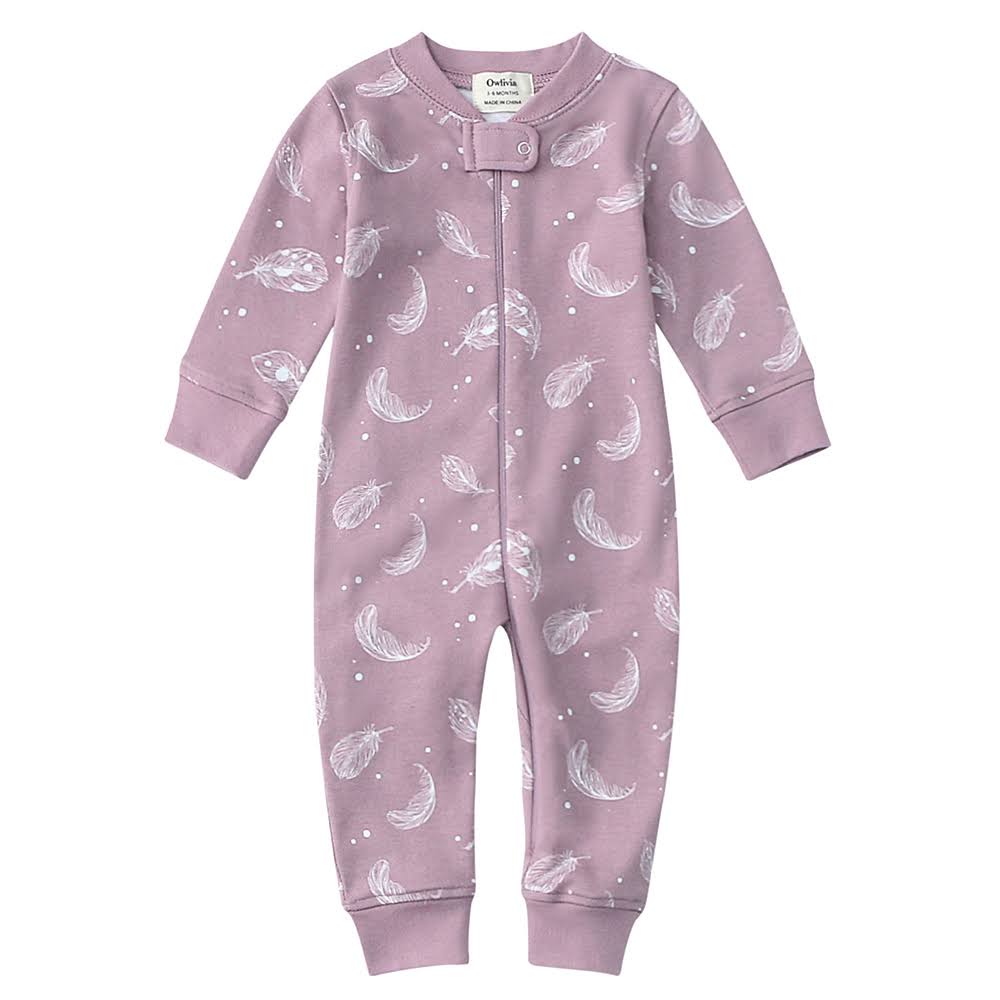 100% Organic Cotton Zip Footless Pajamas - Purple Feather