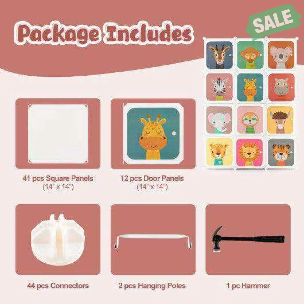 ● Quick for Installation: The package includes 41 square panels 12 door panels 44 connectors 2 hanging pole and a hammer(12 cubes). Illustrated manual will help you conveniently complete the assembly. Please hammer each layer for reinforcement after the installation.