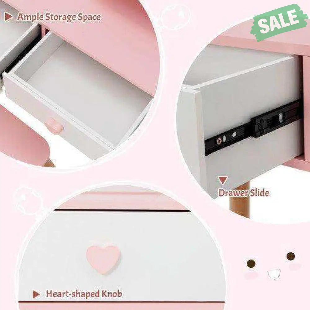 ● Multi-Function In One: With a removable top mirror and shelf design this kids' vanity set can be used not only as a pretend make up table but also a learning desk for writing drawing and reading.