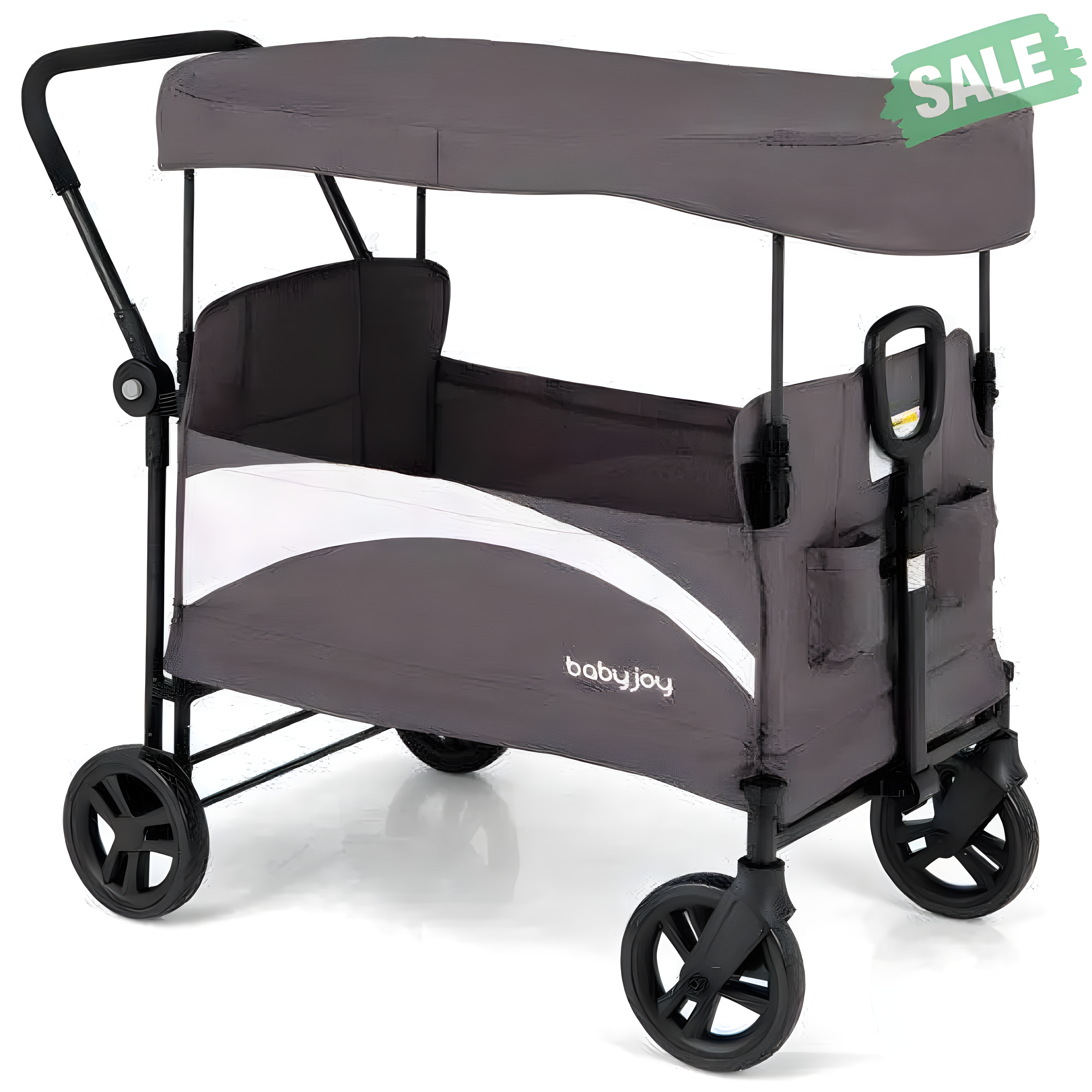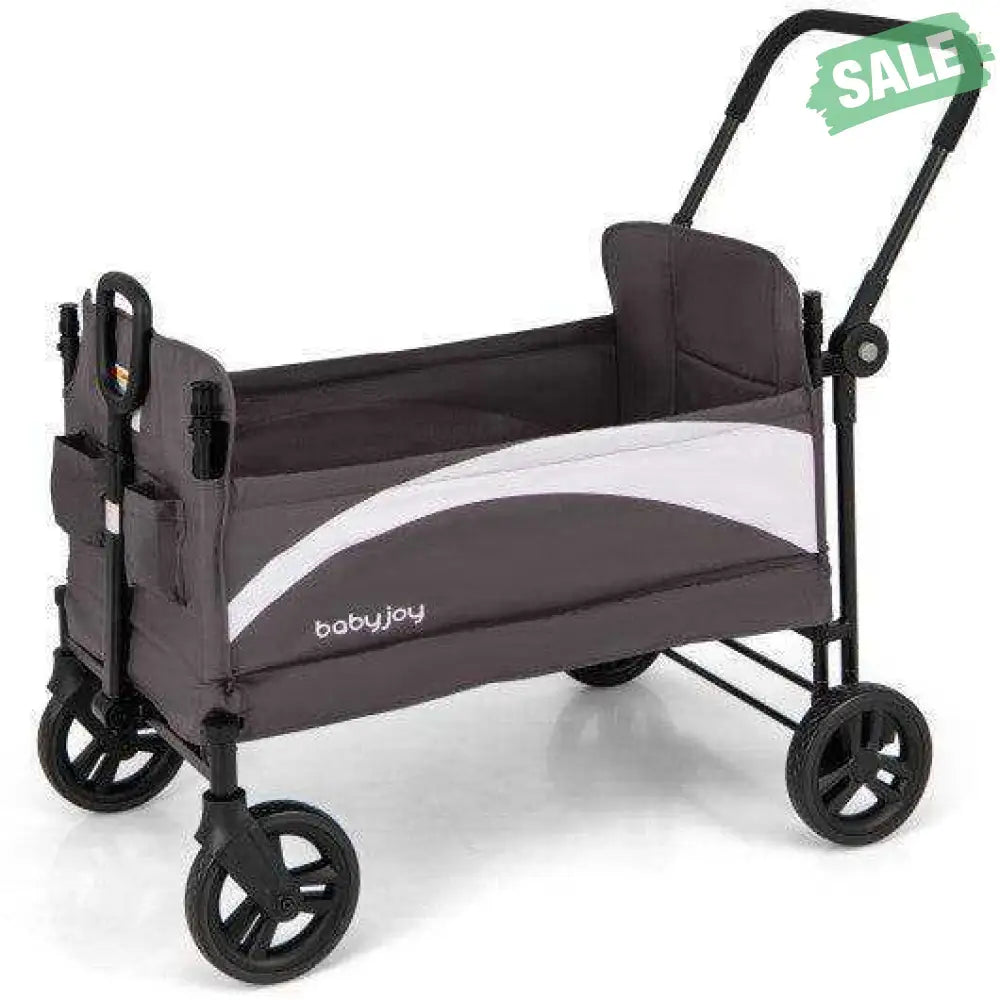 ● 2-in-1 Wagon Cart: With a detachable canopy this wagon cart is perfect to be used as a baby stroller or a storage cart. The large inner space with 2 adjustable safety belts accommodates up to 2 kids within 33 lbs individual weight. When used as a storage cart the removed canopy can be folded and stored in the back pocket.
