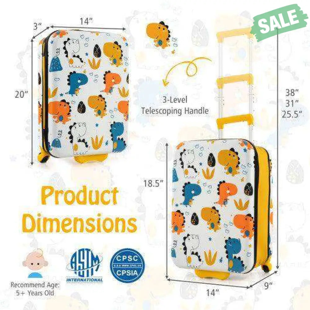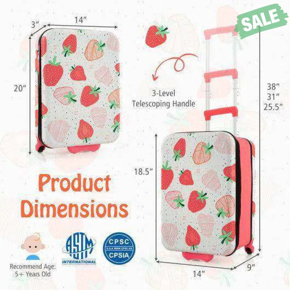 ● Cute Appearance and Wide Application: With its cute strawberry/dinosaur patterns this carry-on suitcase could add a touch of playfulness to your kid's travel experience. And it is suitable for various outdoor activities such as trains airplanes picnics schools sleepovers etc. It has been certified by ASTM and CPSIA.