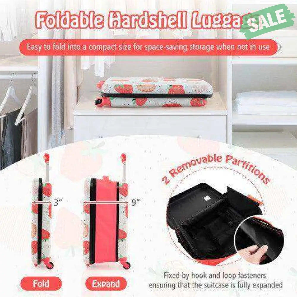 -With its cute strawberry/dinosaur patterns adding a touch of sweetness and whimsy to the suitcase
