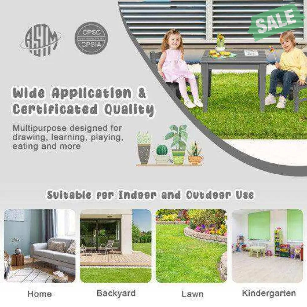 ● High Quality Weather Resistant Material: This children outdoor table is made of upgraded high density polyethylene material which is waterproof sunscreen anti-fade high hardness and corrosion resistance. Unlike regular wood material this table will not crack or fade after long time exposing to the sun. Approved by ASTM and CPSIA the safety and quality is also assured.