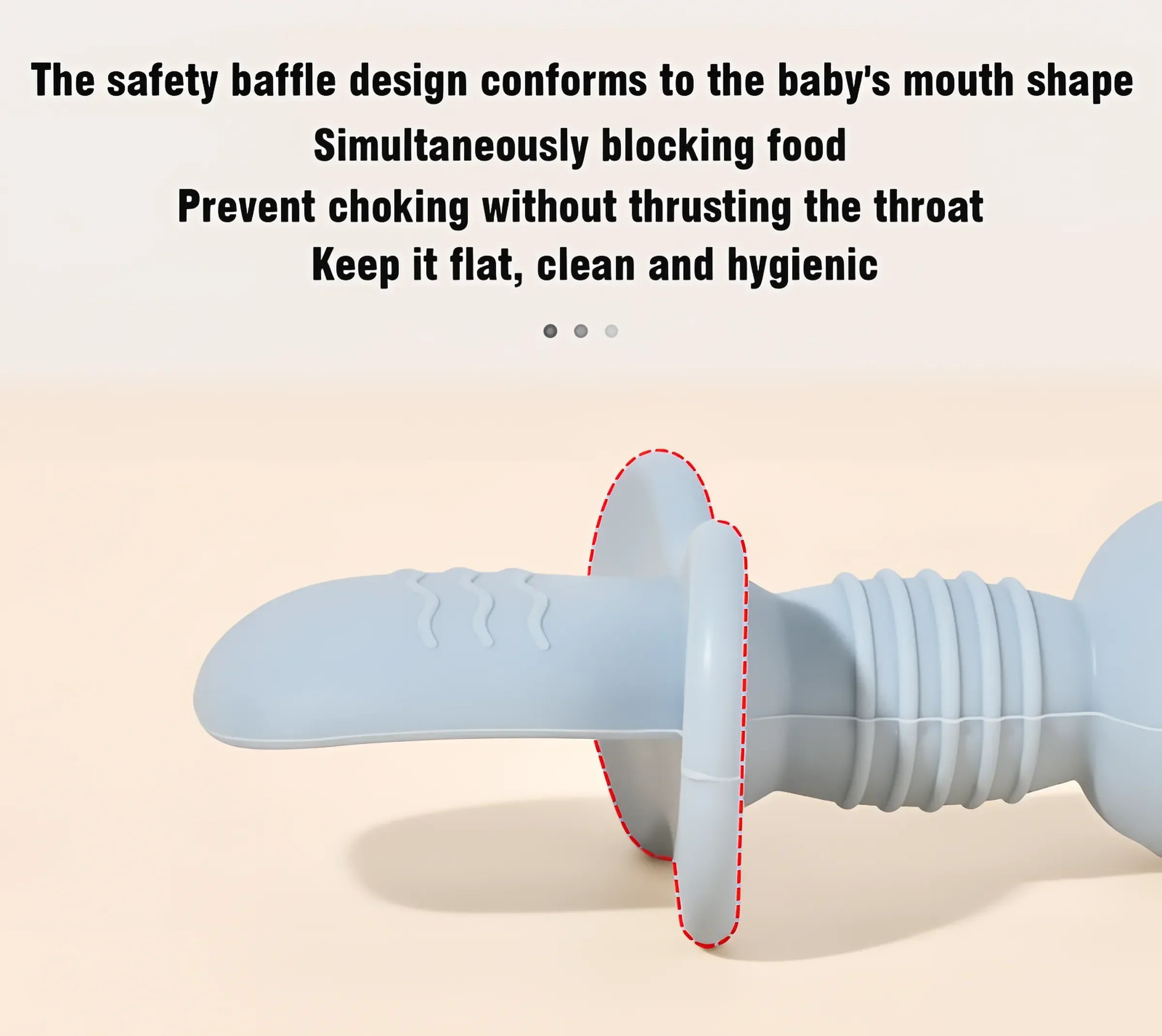 This beautiful set of 2 food-grade silicone cutlery, soft and suitable for your baby's little hands, will help him become familiar with cutlery during weaning.