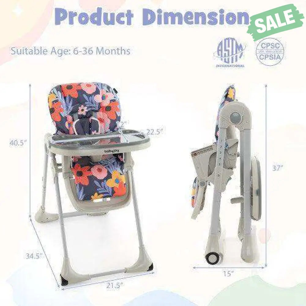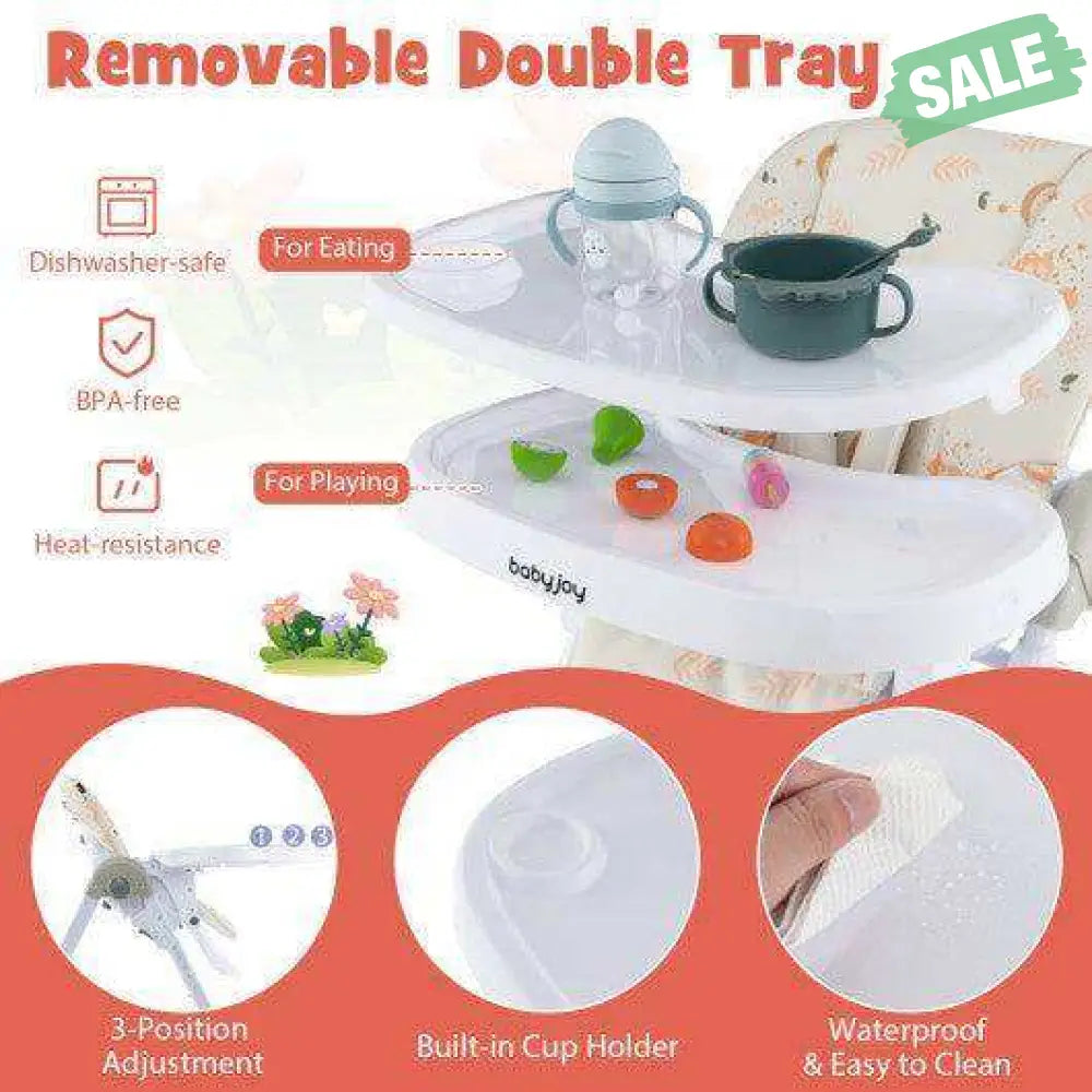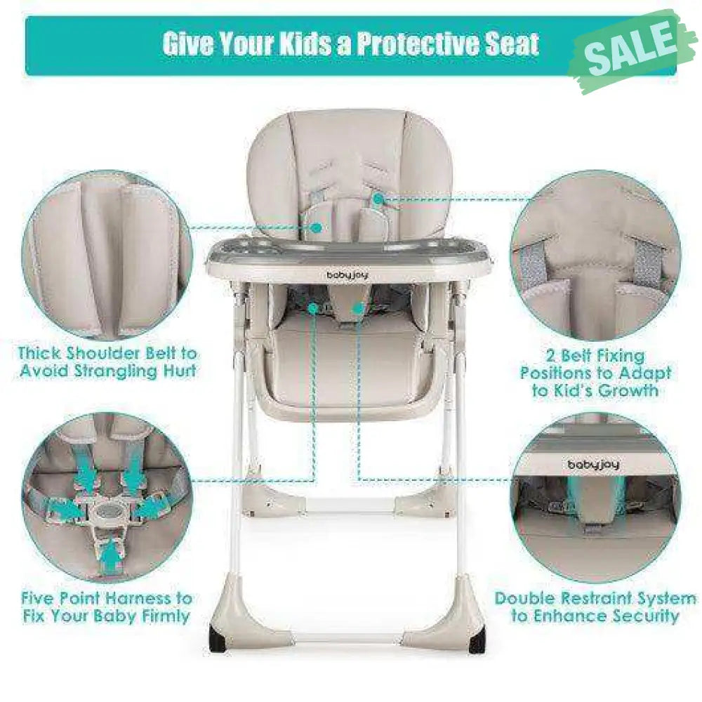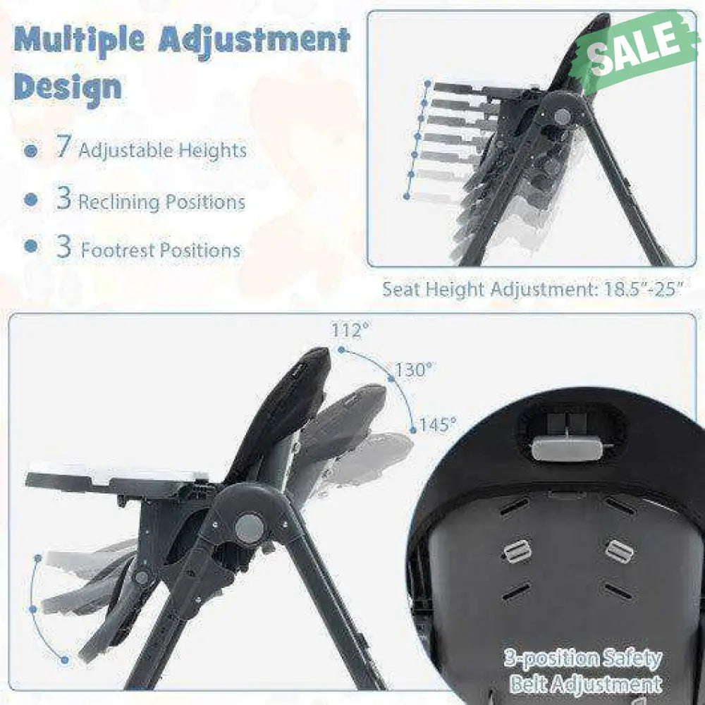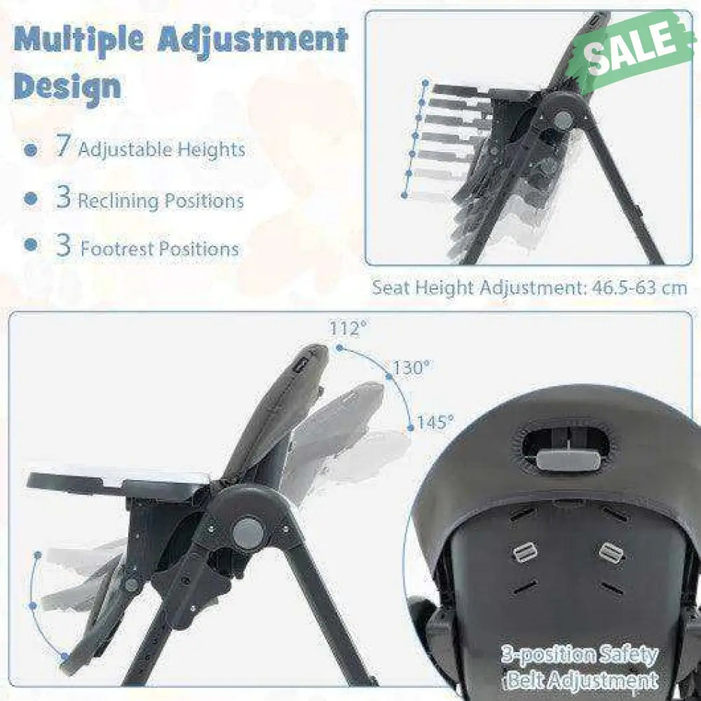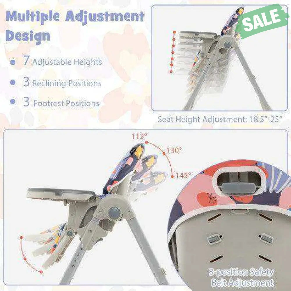 ● Convertible and Adjustable Design: This baby highchair has 7 adjustable seat heights 3 backrest reclining angles and 3 footrest positions suitable for babies of most sizes. Featuring multipurpose use the infant high chair not only is a feeding chair but also can be transformed into a recliner or a reading chair.