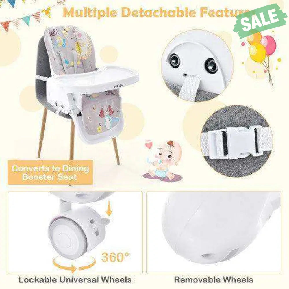 ● 3-In-1 Highchair with Cushion: This convertible baby chair can be used as a baby high chair toddler low chair or dining booster seat. It's ideal for various activities including feeding reading and relaxing. The seat has a comfortable and detachable cushion that is soft durable breathable and easy to clean. With fixing buckle the cushion can be attached to an adult dining chair.
