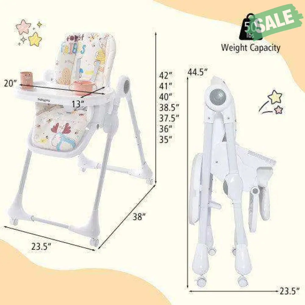 ● Highchair with Multiple Adjustments: This foldable baby high chair is designed with 7-level adjustable height and 3-position adjustable tray to match tables at different heights and grow up with your baby. The 3-level adjustable backrest supports your baby's back for added comfort. Additionally the 5-angle footrest can meet baby's postures.
