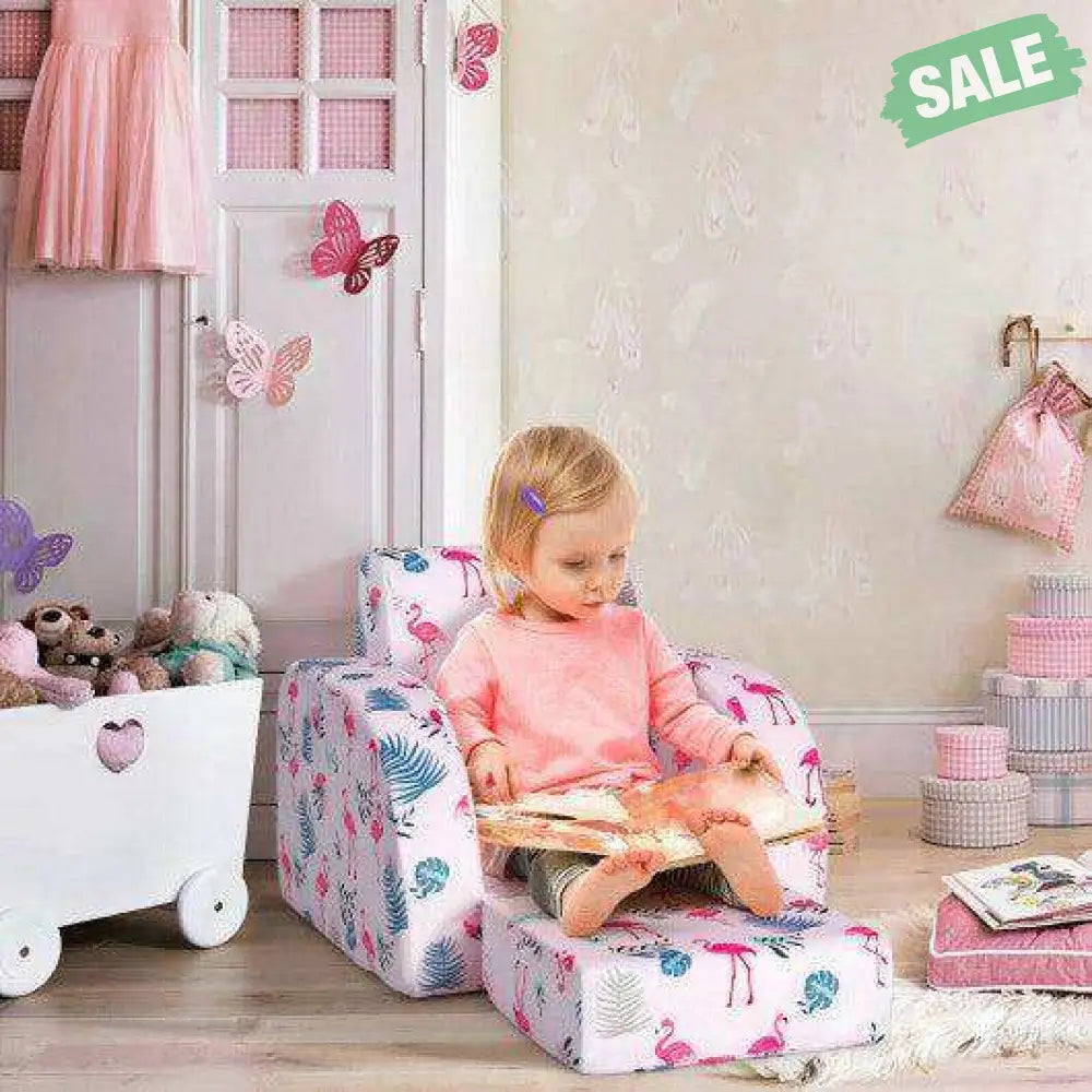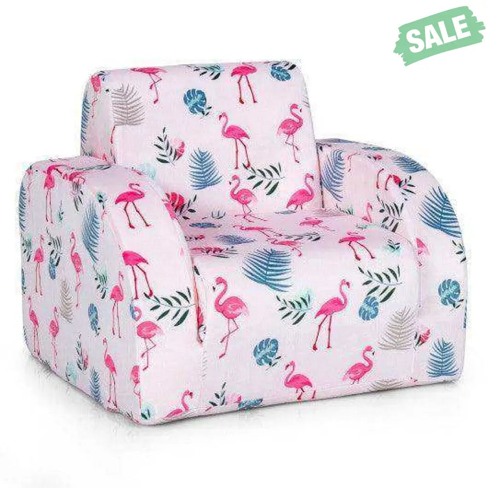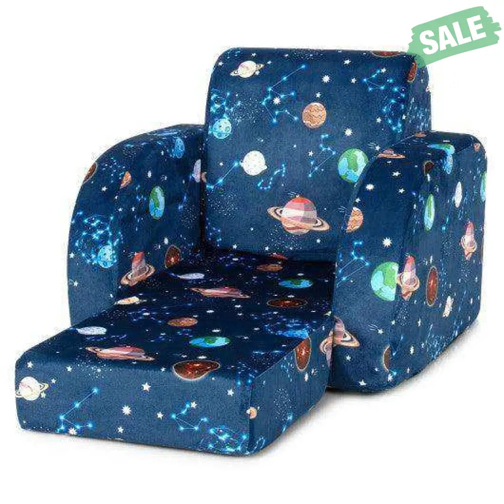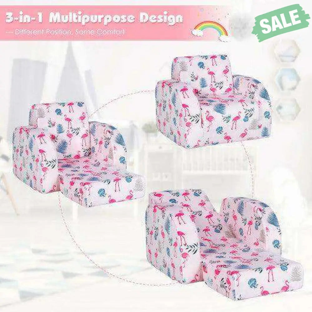 Designed in delicate planet/flamingo patterns this 3-in-1 convertible kids sofa bed will attract your kids to use it. What improves their using experience is that the sofa is made of soft velvet fabric and thick sponge for strong support and comfy feelings. Moreover the raised armrest and wide backrest provide your kids with relaxation on their head and arms. Whether your kids want to rest read play or watch TVs it can find the suitable position as it can be folded or unfolded into 3 shapes to meet different needs. Its lightweight and foldable design allows you to move it to another room effortlessly. No assembly required.