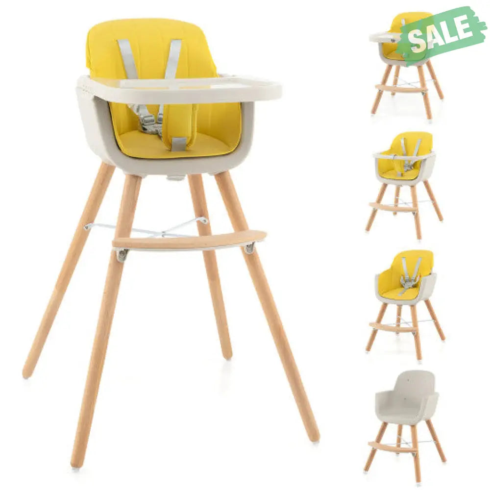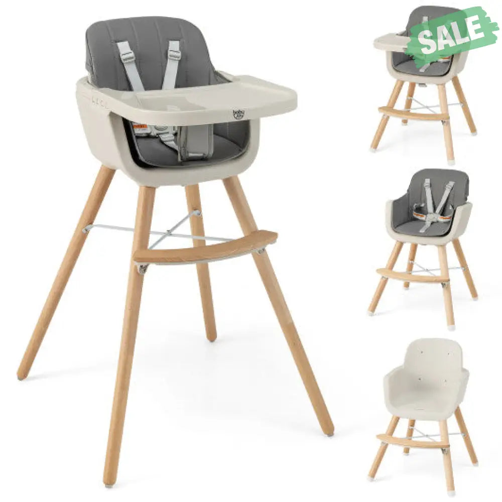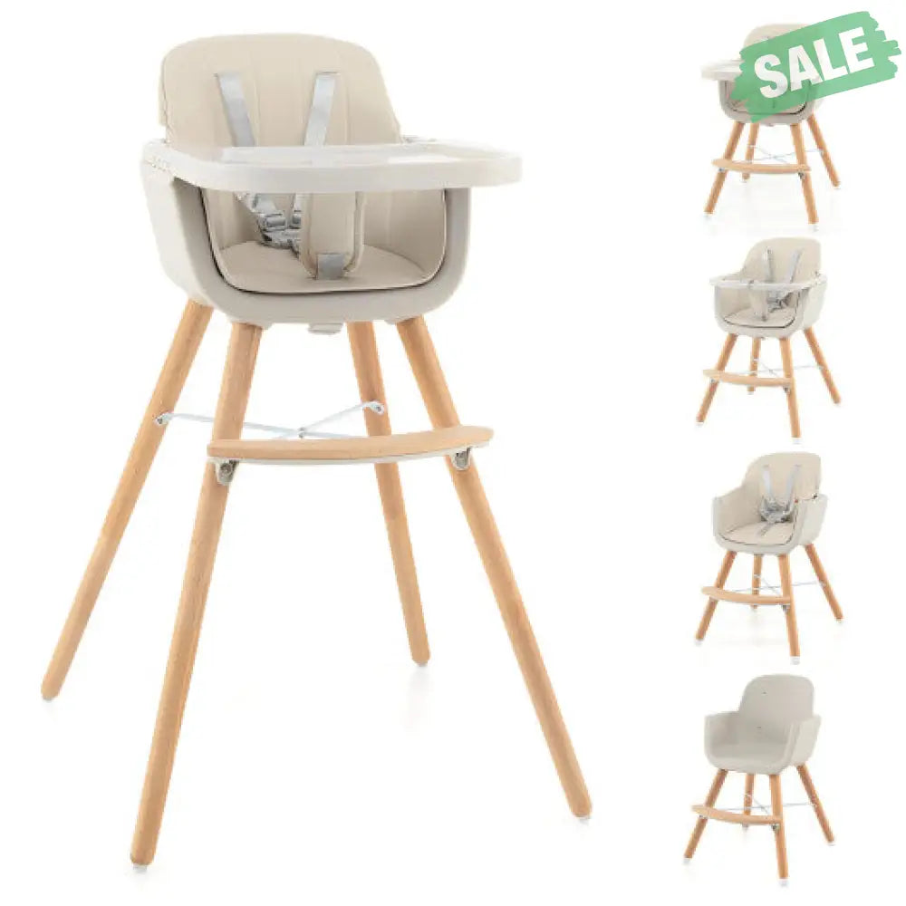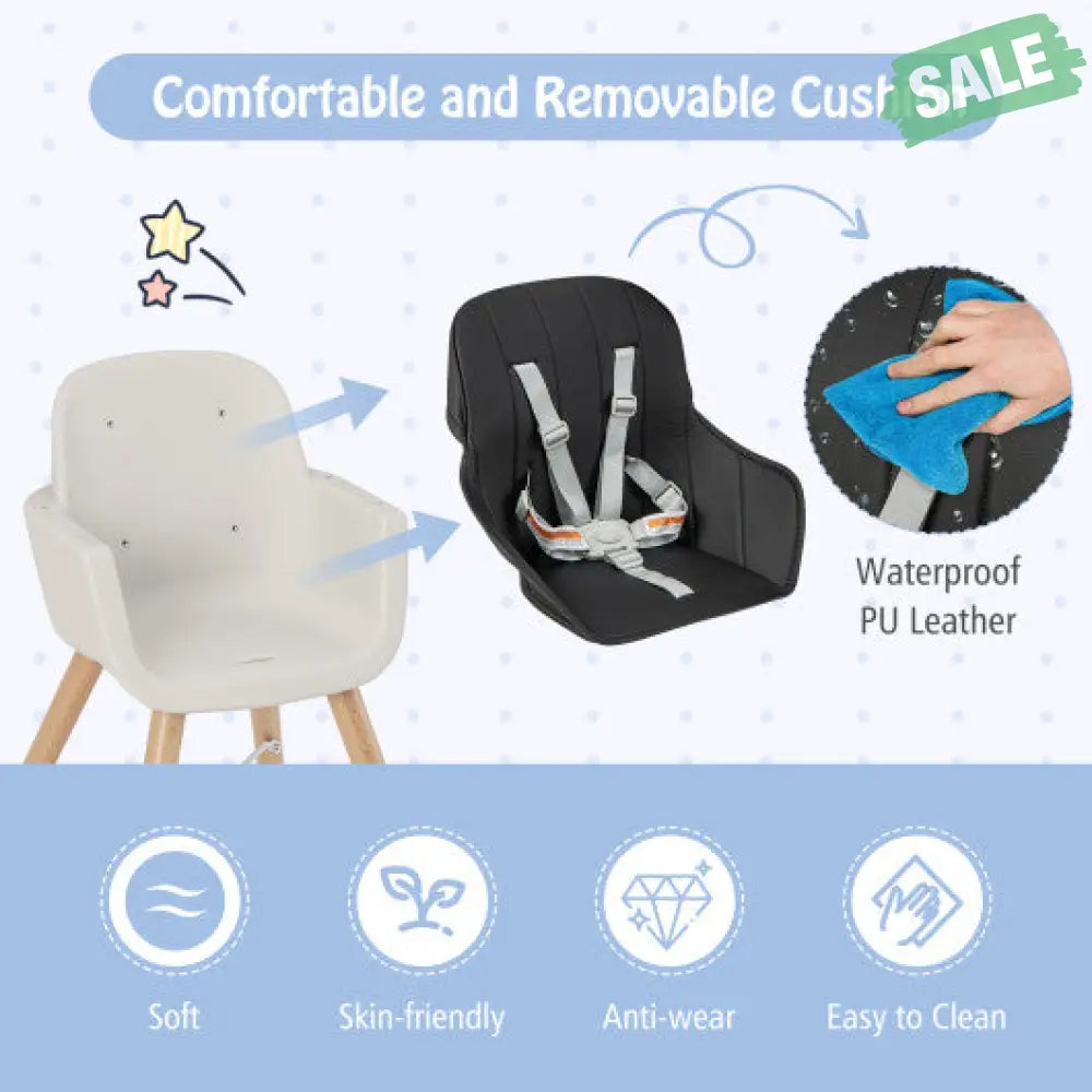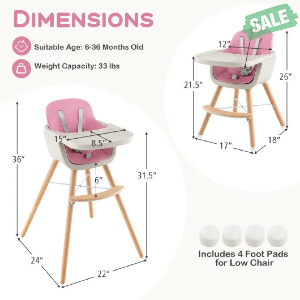 - 3-in-1 Convertible High Chair: By simply adjusting the legs and tray this modern high chair can be converted into a baby feeding chair a toddler seat with guardrail or an ordinary stool chair to meet the different growth needs of children from six months to six years old.