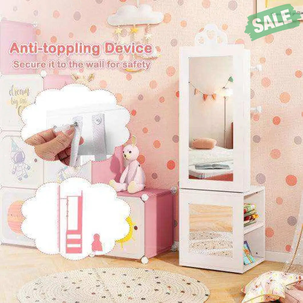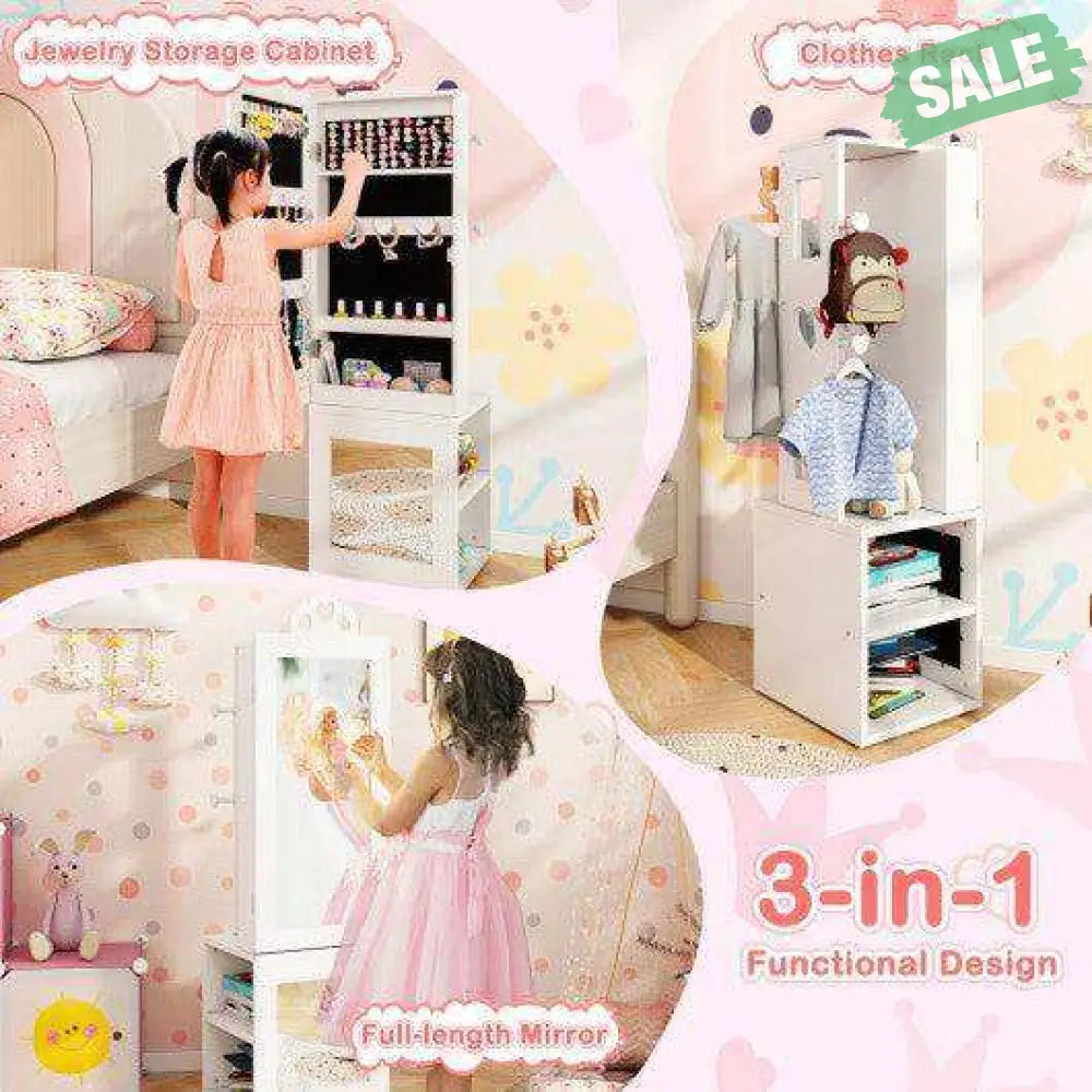 ‚óè Versatile 3 In 1 Design: Designed to meet all your little one's fashion needs this kids jewelry cabinet blends a full-length mirror and clothes rack. Featuring cute heart-shaped cut-outs it is not just a piece of furniture but also a charming decoration that suits any girl's bedroom.
