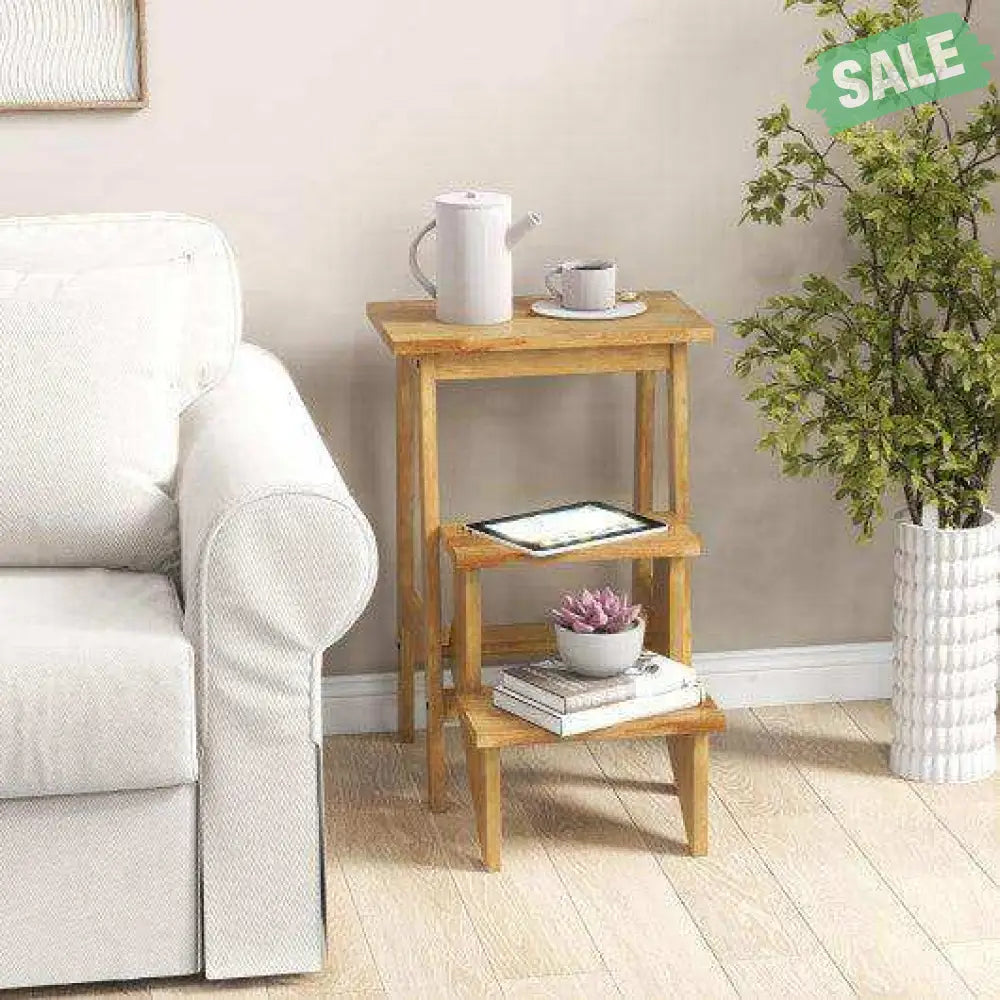 ● 3-in-1 Step Ladder: Different from other common step stools which only have one way to use this sturdy stepladder can be transformed into a practical stool offering an additional seat. When it becomes a stool it occupies less area to save your home space as well. And it can be used as plant stand or side table as well.