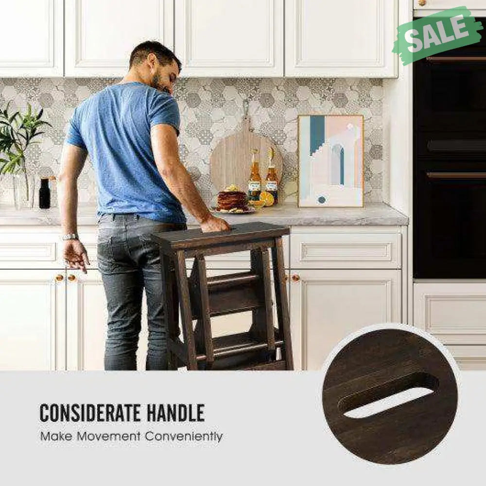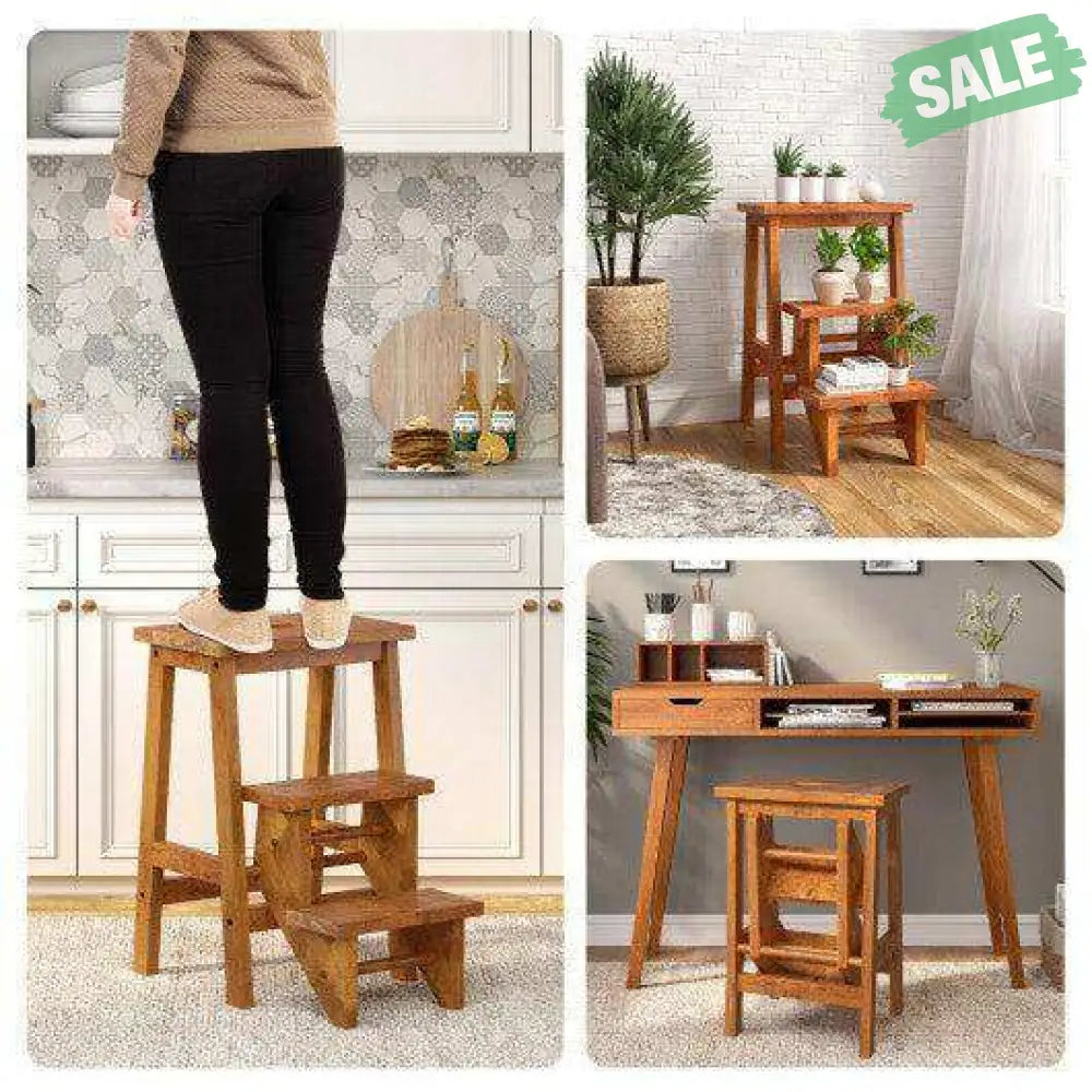 ● Solid Rubber Wood: Constructed of solid rubber wood this multifunctional step stool not only ensures its long service time but also comes with a strong loading capacity of up to 200 lbs for each pedal. Besides the surface is painted which allows you to clean it with ease.