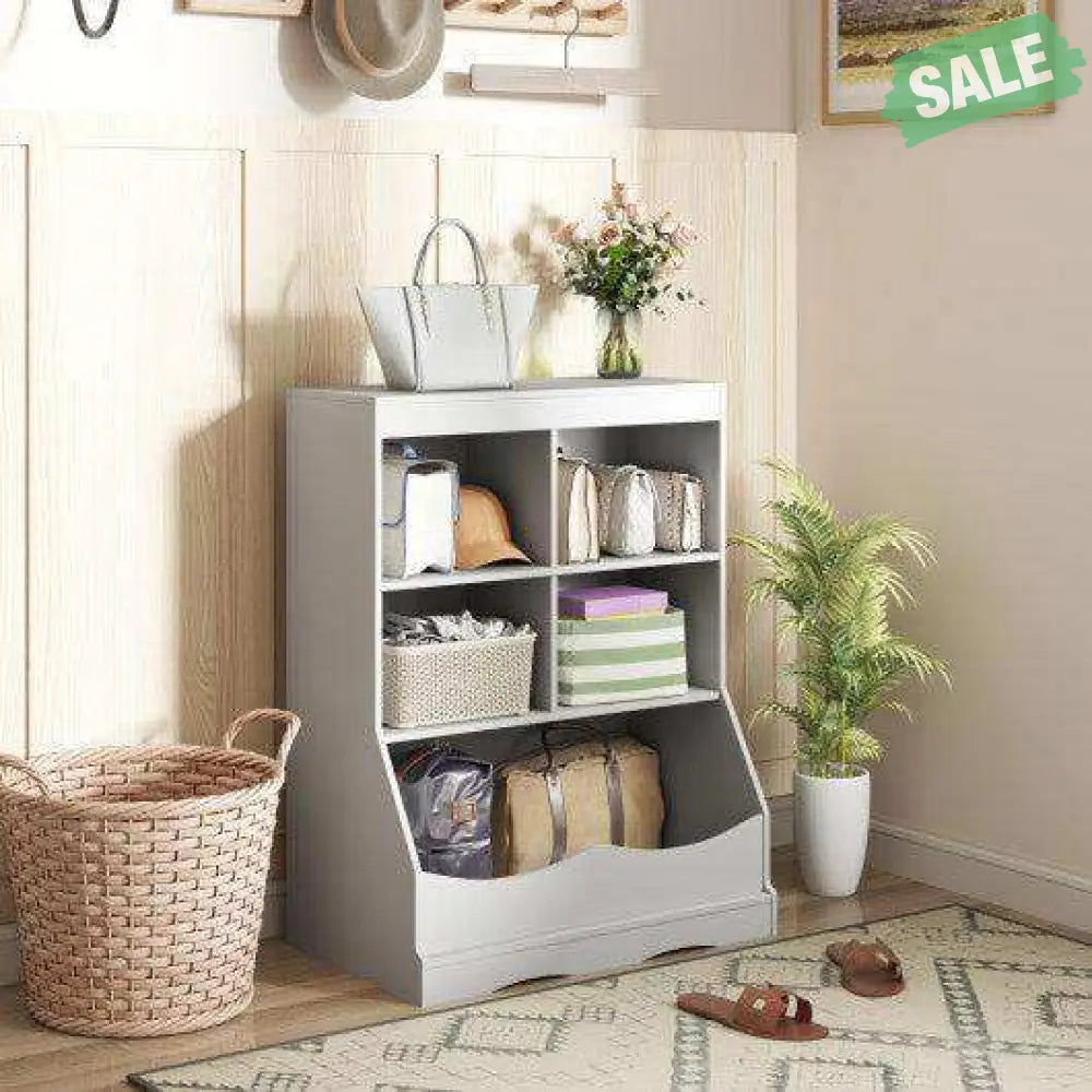 ● Ample Storage Space: This kids storage shelf presents a spacious tabletop 4 compartments and 1 large storage bin offering extensive space for toys clothes books and decorations. Encourage your children to maintain order and create a clutter-free environment by themselves.