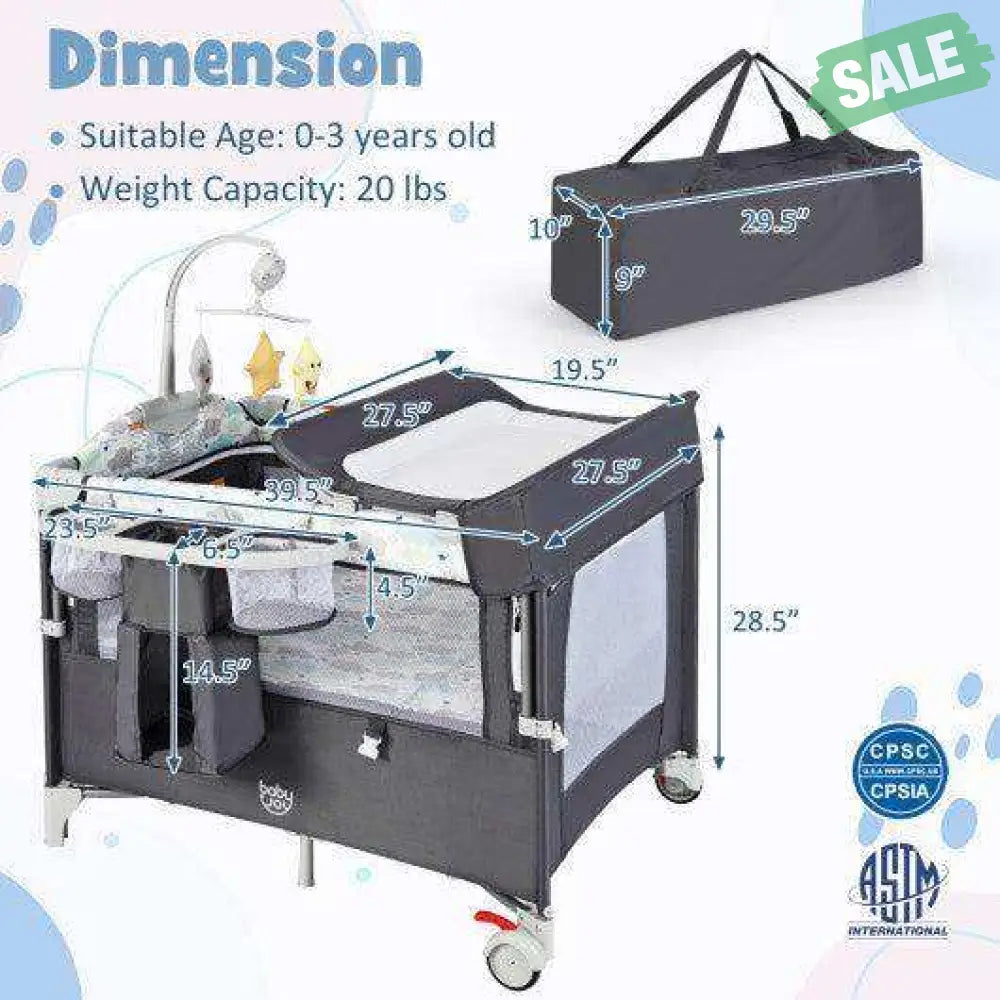 ● 5-in-1 Multifunctional Composition: This multifunctional crib can be used in a variety of ways so they can accompany the growth of the baby. It can be used as a baby bedside sleeper travel crib changing diaper table baby cradle and playpens and are ideal tools to reduce the burden on mothers.