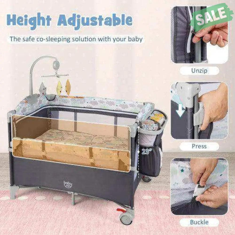 - 5-in-1 design baby bedside sleeper travel crib changing diaper table cradle and playpen