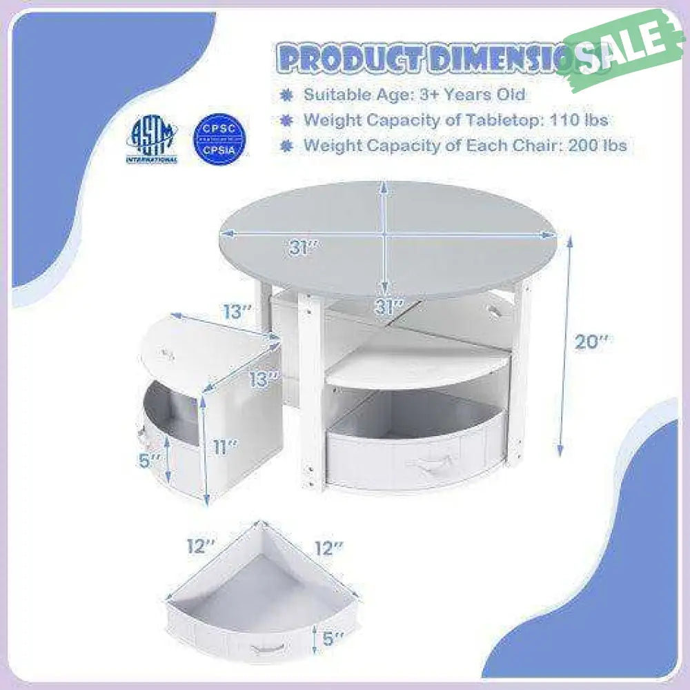 ● Safety Comes First: This kids' table and stools set is fully compliant with ASTM and CPSIA ensuring a safe and healthy environment for your children to learn and play. The sturdy MDF structure can withstand children's energetic play. Weight capacity: 110 lbs (tabletop) 200 lbs (stool).