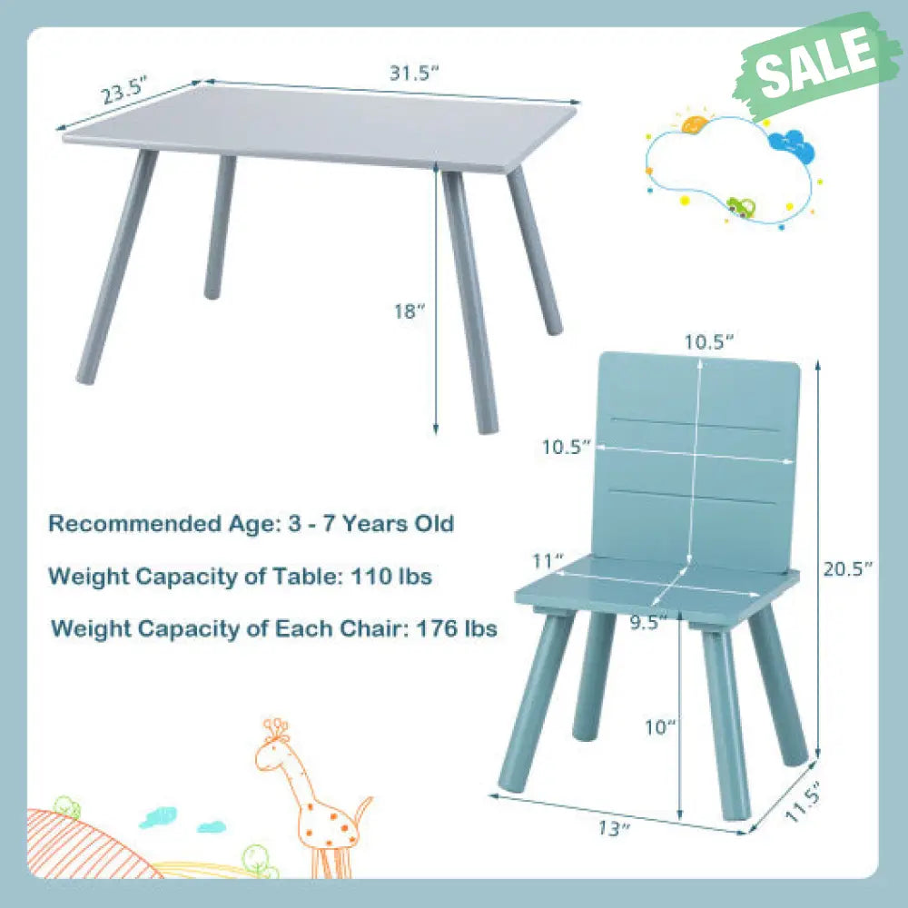 ● Durable Material and Sturdy Construction: Made of solid wood legs and high quality MDF material this kids table and chairs set features great durability and sturdiness. And the safe painting will not harm your kids health. Besides the reinforced structure and non-slip foot pads ensure strong weight capacity and stability. Weight capacity of table: 110 lbs weight capacity of each chair: 176 lbs.