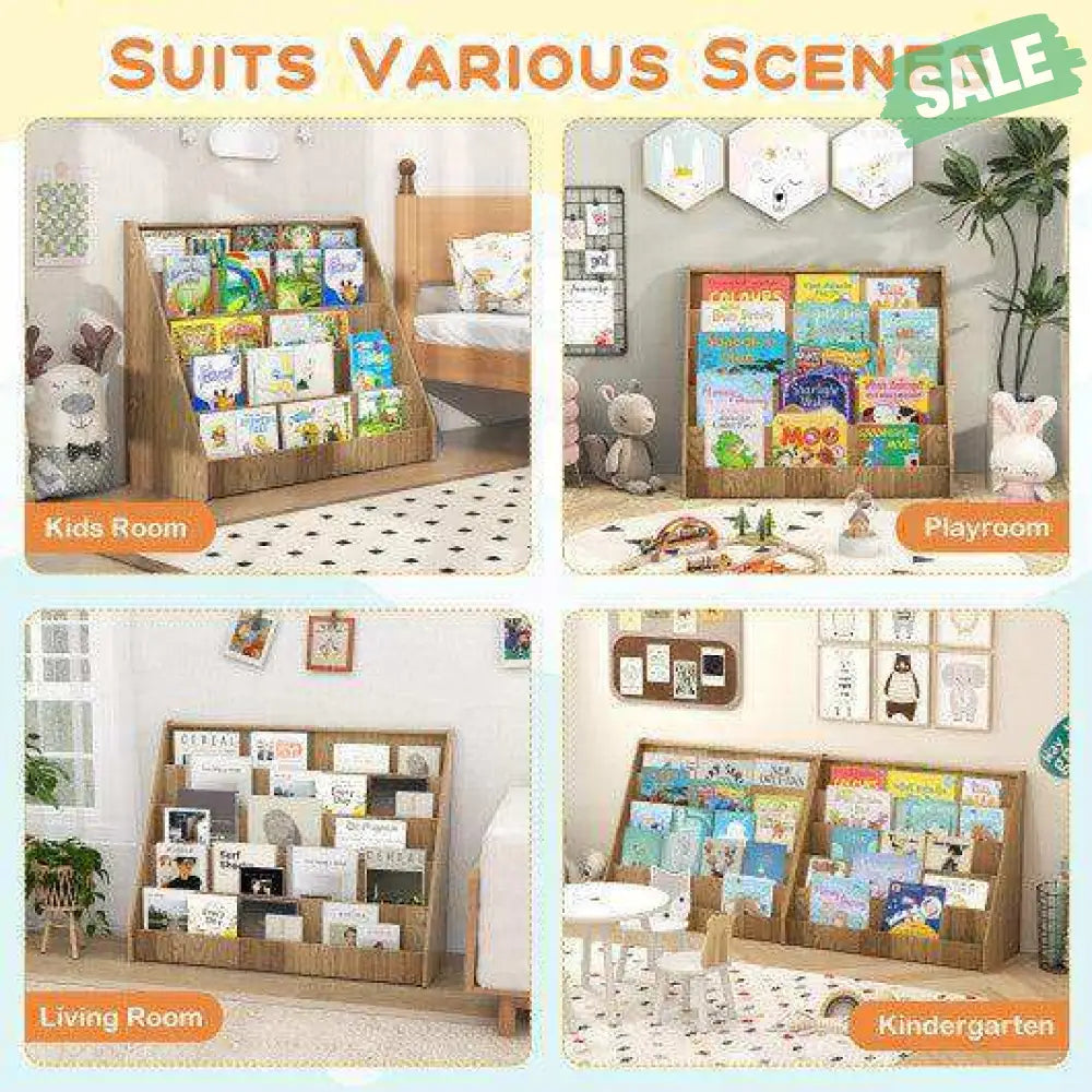 ‚óè Multi-Purpose Bookcase: Beyond serving as a practical storage solution in playrooms and kids' bedrooms our bookshelf excels in educational spaces like kindergartens classrooms and school libraries. It also doubles as an elegant magazine or periodical rack suitable for living rooms and office environments.