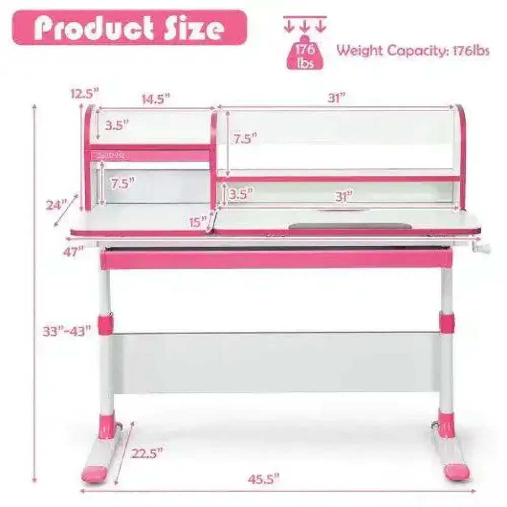 ● Sturdy Construction with Durable Material: The height adjustable children desk is constructed of solid iron base and engineered wood which ensures its long-lasting durability. With a weight capacity of 176lbs the tabletop can firmly hold all books and stationery. The surface coated with protective paint is scratch and water resistant.