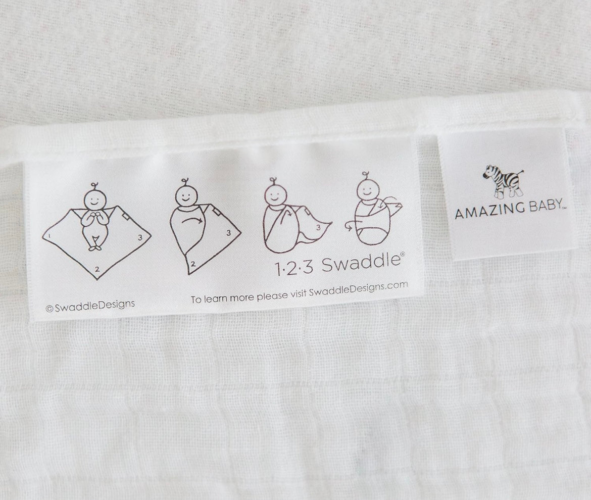 Amazing Baby premium quality muslin swaddles get softer with every wash. Rest easy when your baby is lovingly swaddled in premium 100% cotton muslin. The open weave increases breathability and reduces the risk of overheating. The generous size and square shape makes swaddling easy as 123. Beyond swaddling, use as a nursing cover, sunshield on stroller, playmat for tummy time, and more.