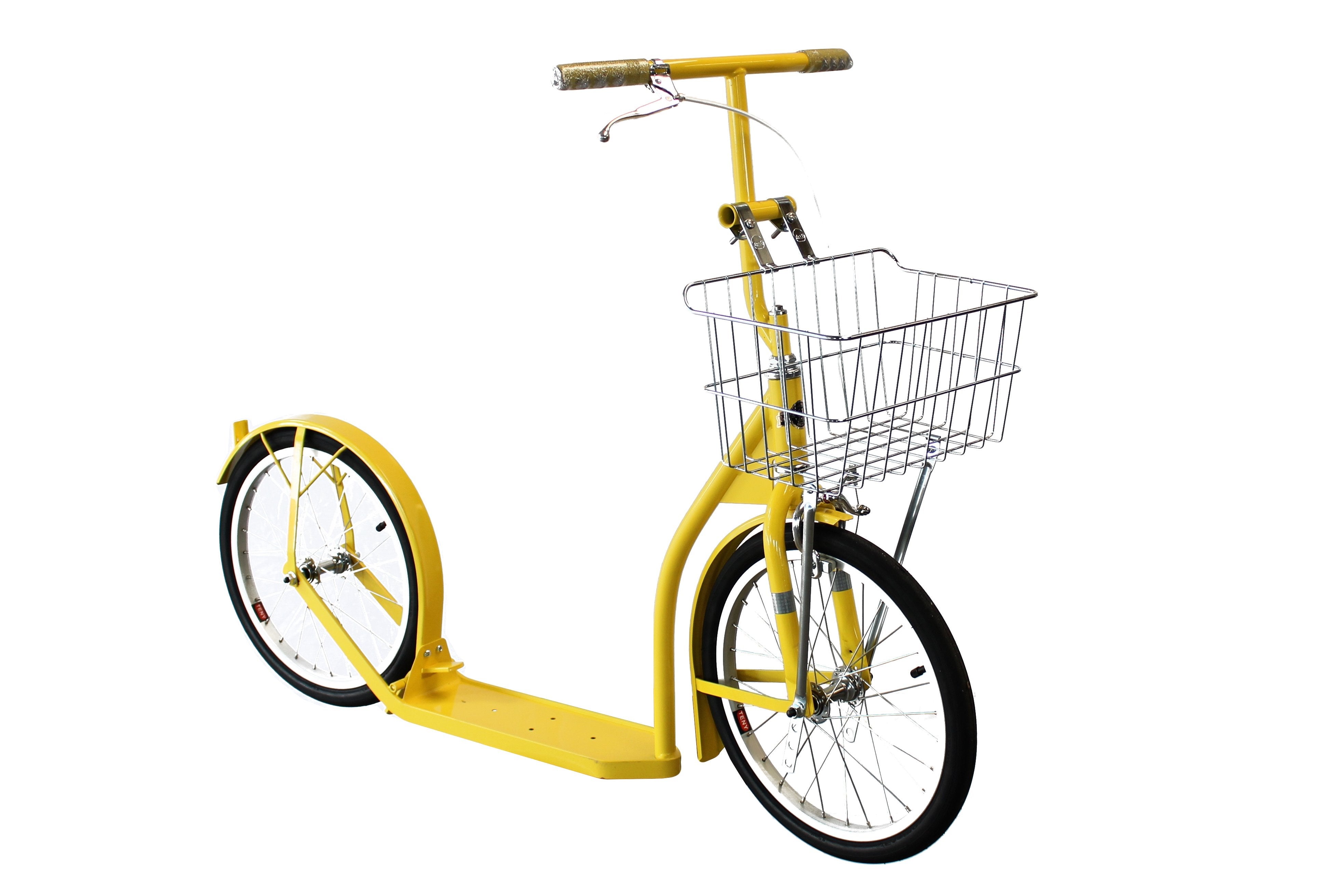 Amish Kick Scooter - Big Kid Size. If you take a drive through Lancaster County, it won't take you long to see a Kick Scooter being ridden by an Amish person. Next to the Horse and Buggy, these sleek racing scooters are the most popular method of transportation for the Amish People. Hop on one of these genuine Amish-Made Scooters yourself and go places faster while getting some fun, heart-healthy exercise. This Kick Scooter is made by the Amish Folks at Groffdale Scooters, a small Amish machine shop in Lancaster County, PA. All their scooters are quality constructed with all-steel frames and fenders, ball bearings for easy steering, and a powder coated finish. This model is great for kids or smaller youth. The Model 1660 with 16" wheels is the most common scooter seen at one-room Amish schools. It comes standard with 85 psi air tires on 16" aluminum rimmed racing wheels, a rear foot brake, a front hand brake, and a wire cargo basket. The scooter has a low rider platform with a 1.75" ground clearance for comfortable and efficient riding. The manufacturer recommended rider weight limit is 175 pounds. Choose between seven scooter colors. Also, you can choose to add a handy kickstand to keep your scooter standing. The Amish Scooter requires assembly and it comes with detailed assembly instructions.