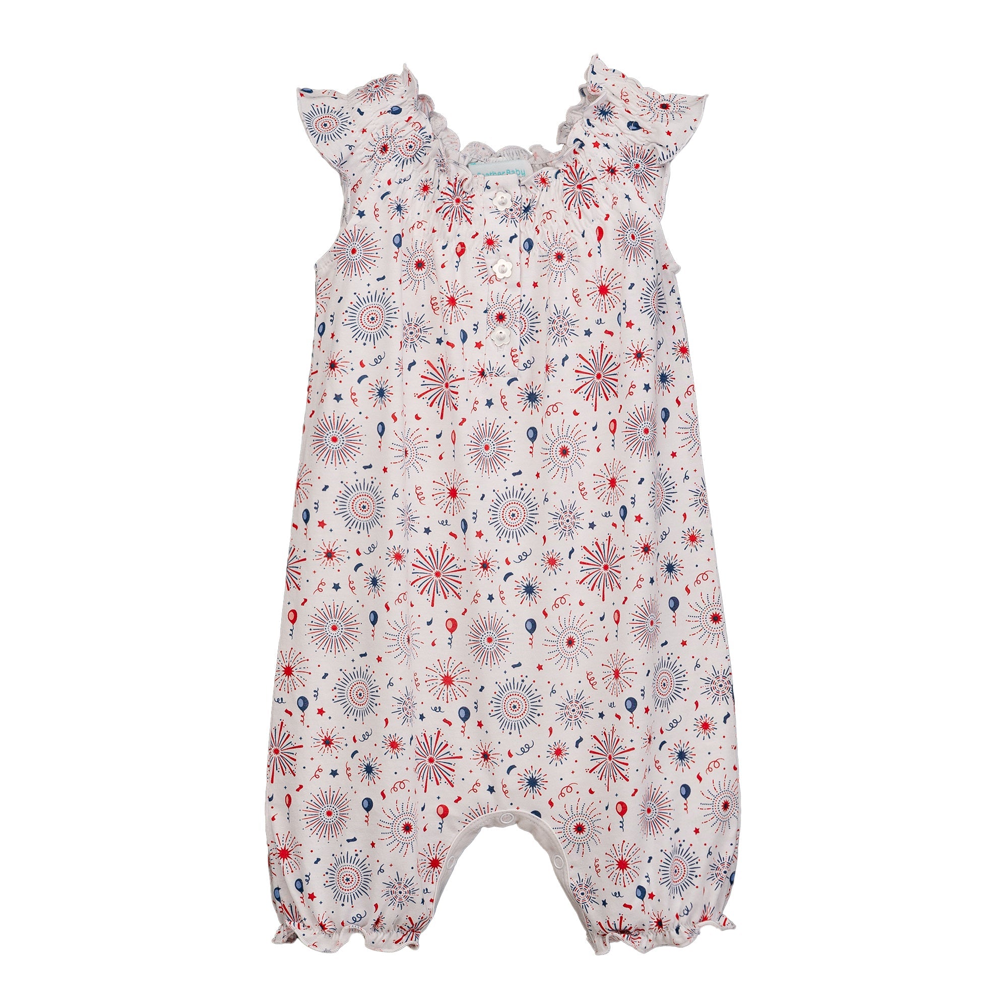 Bursting with joy, our Fireworks print is a festive display of red, white, and blue magic! Dazzling firework bursts, swirling confetti, and floating balloons bring the excitement of a perfect summer night to life. This playful and patriotic design is perfect for little ones ready to celebrate in style.