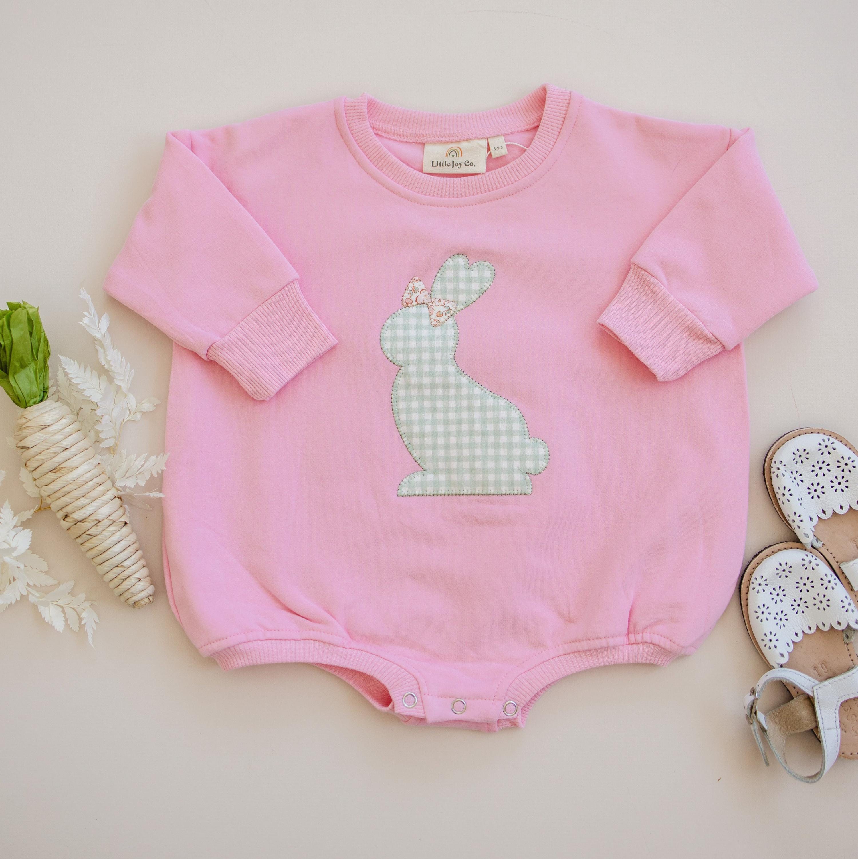 - Applique Bunny Sweatshirt Romper - Infant Baby Toddler Girl - Easter Outfit