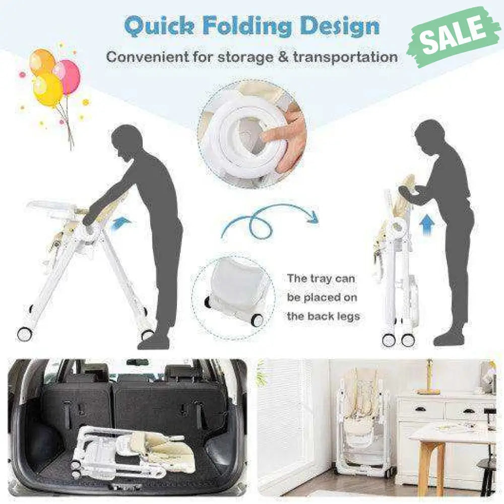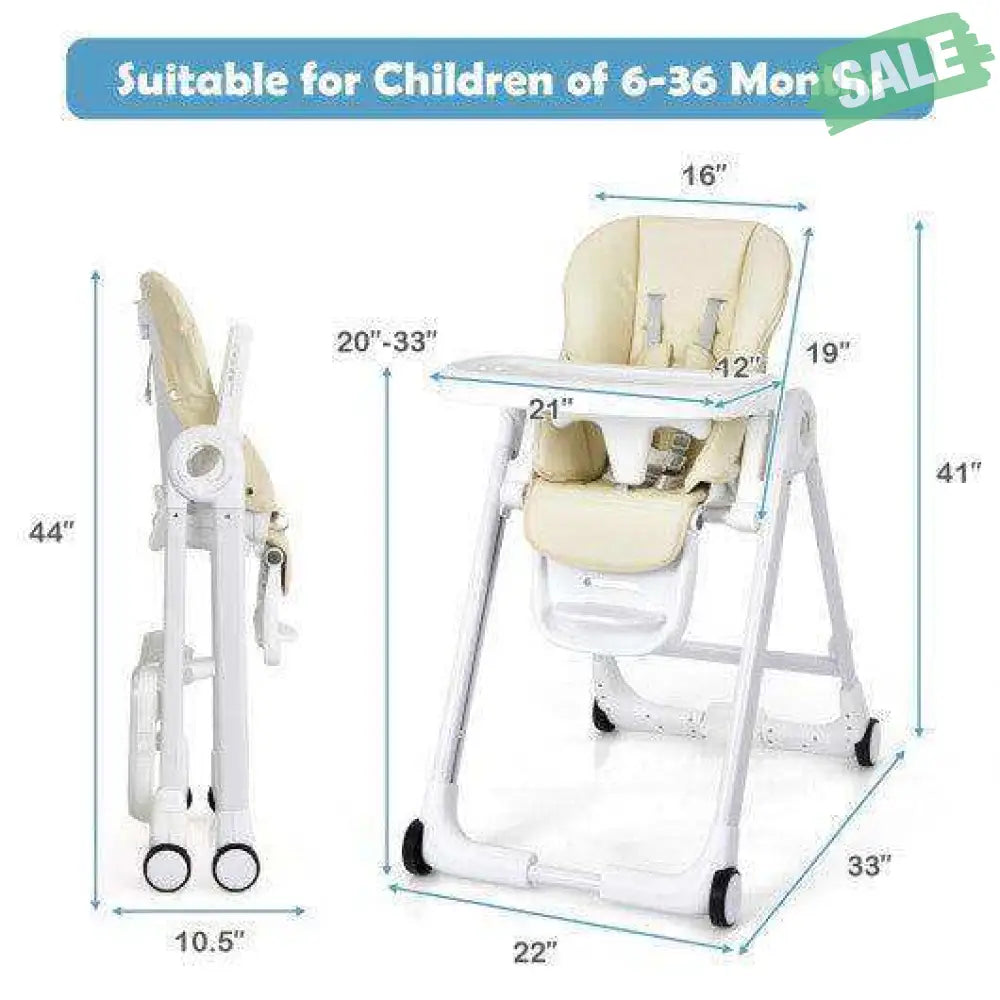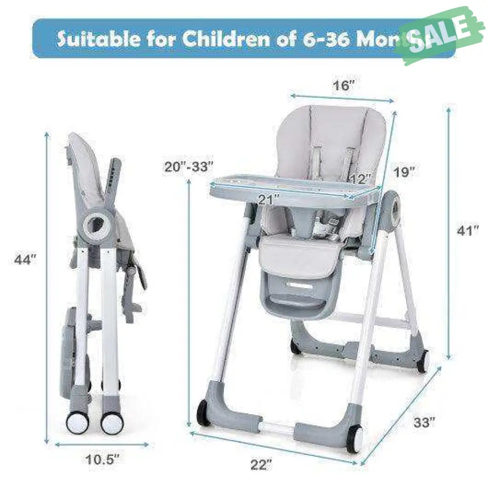 ● Adjustable Baby High Chair: This baby high chair with 7 adjustable heights adapts to dining table of different heights. The footrest with 3 positions and 3 heights as well as 3-position food trays provide your baby with comfortable sitting experience. Also the reclining backrest features 5 positions for multi uses such as eating feeding relaxing.
