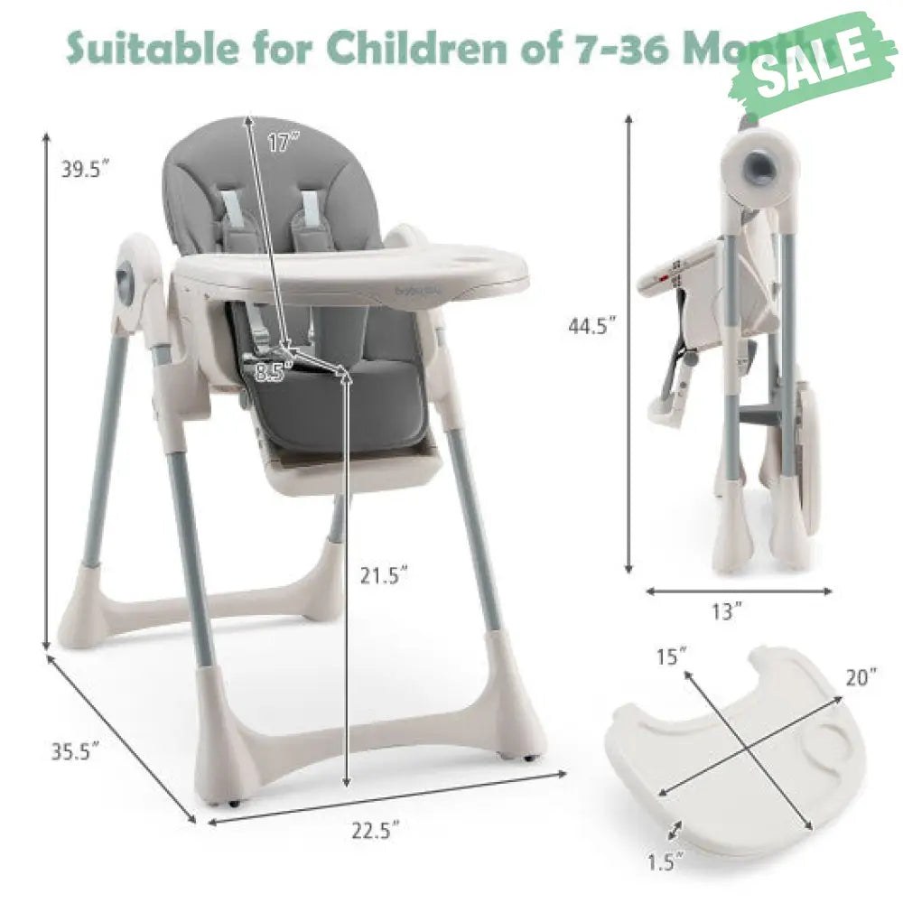 ● Easy Assembly and Foldable Design: With one-click folding buttons you can fold the highchair into a compact size for easy transportation and storage. It can be stored in corner or car trunks which saves your time and space. The tray can be stored behind when not in use. Suitable age: 7-36 months.