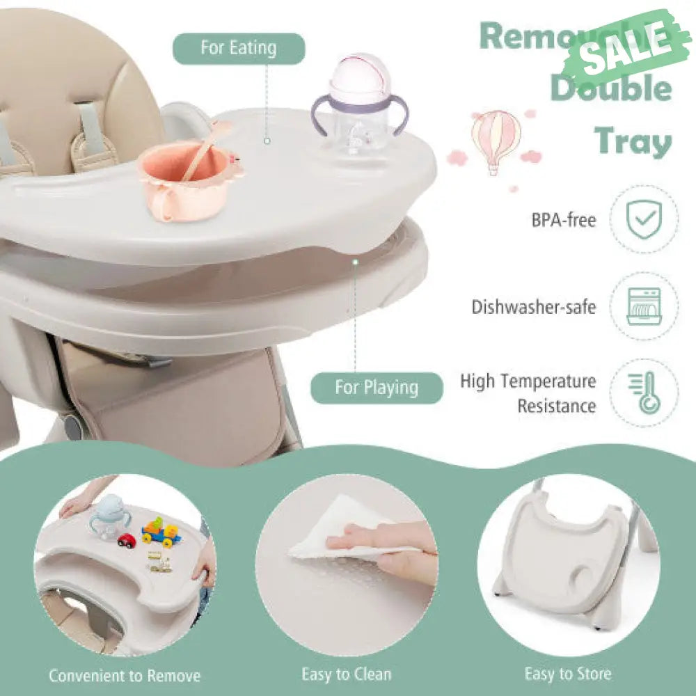 ● 3-in-1 Convertible Design: This baby high chair is capable of being converted into an infant chair a toddler high chair and a child seat which perfectly accompanies the growth of your baby. Moreover the removable and easy-to-clean tray features 3 positions for eating feeding and playing.