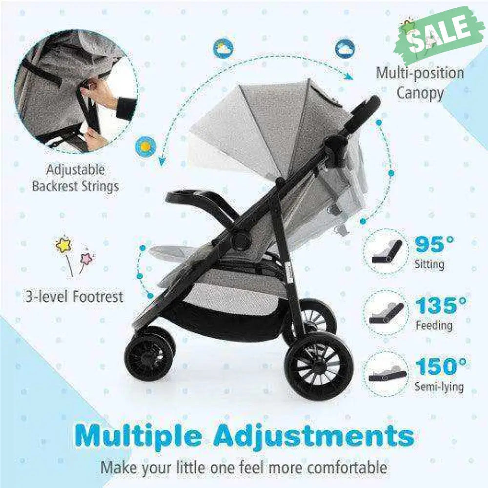 -Adjustable backrest up to 150° and 3-level adjustable footrest fit growing babies