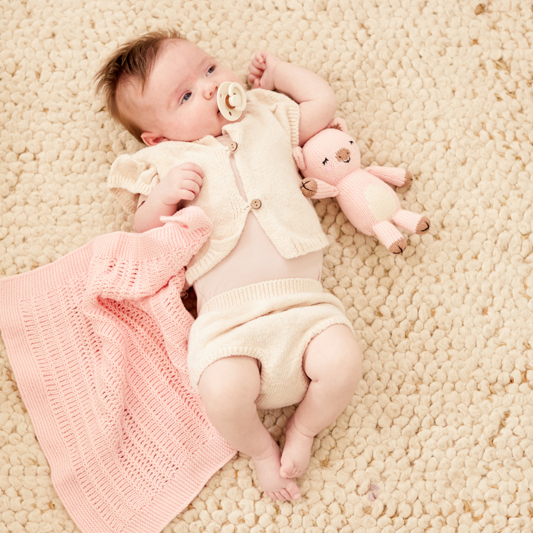 Introducing Baby Pig, the cutest new addition to our Farm Collection! This 7” handcrafted piglet is ethically made in Peru from the softest, sustainable Peruvian cotton, making it the perfect snuggle buddy and a charming decor piece for any nursery or playroom.