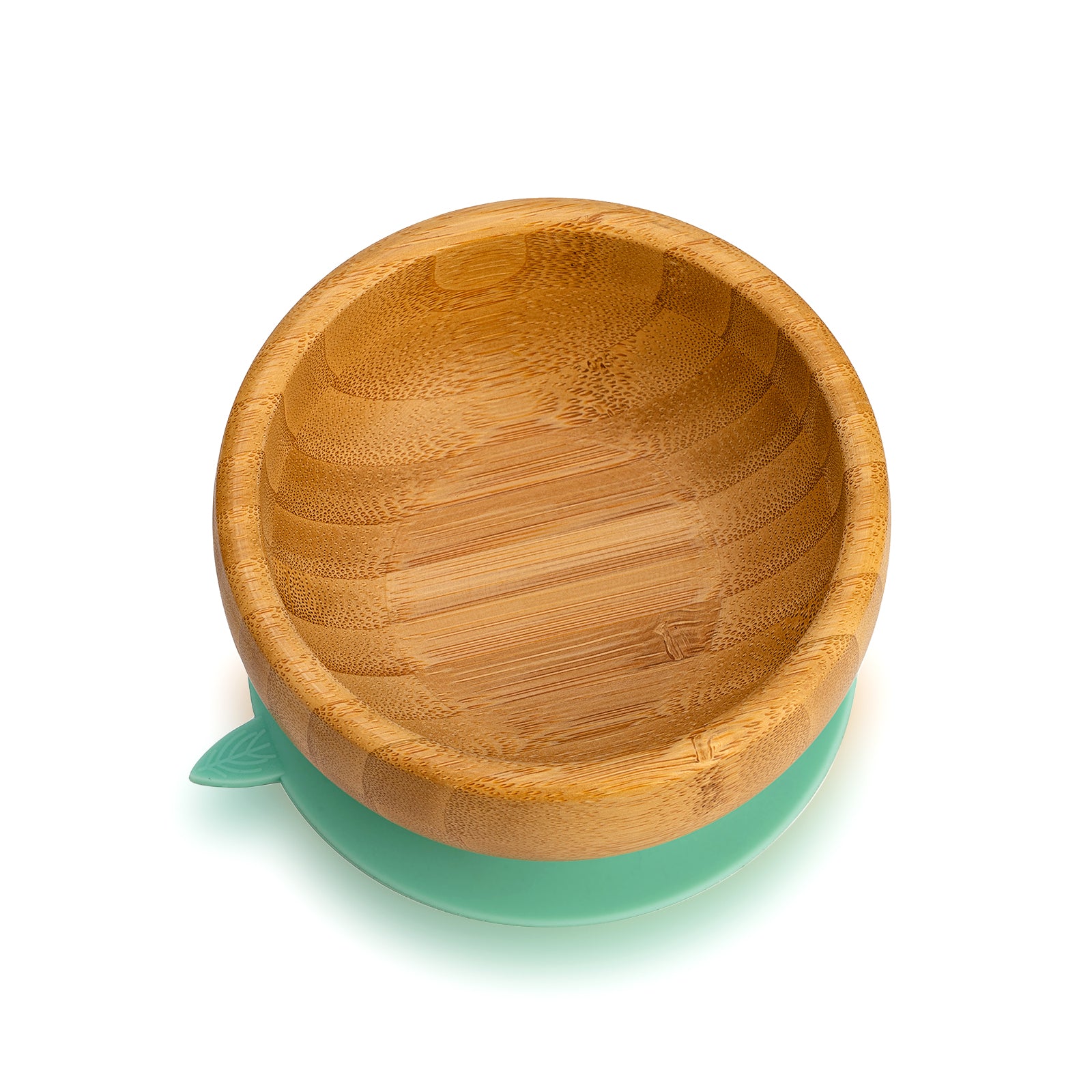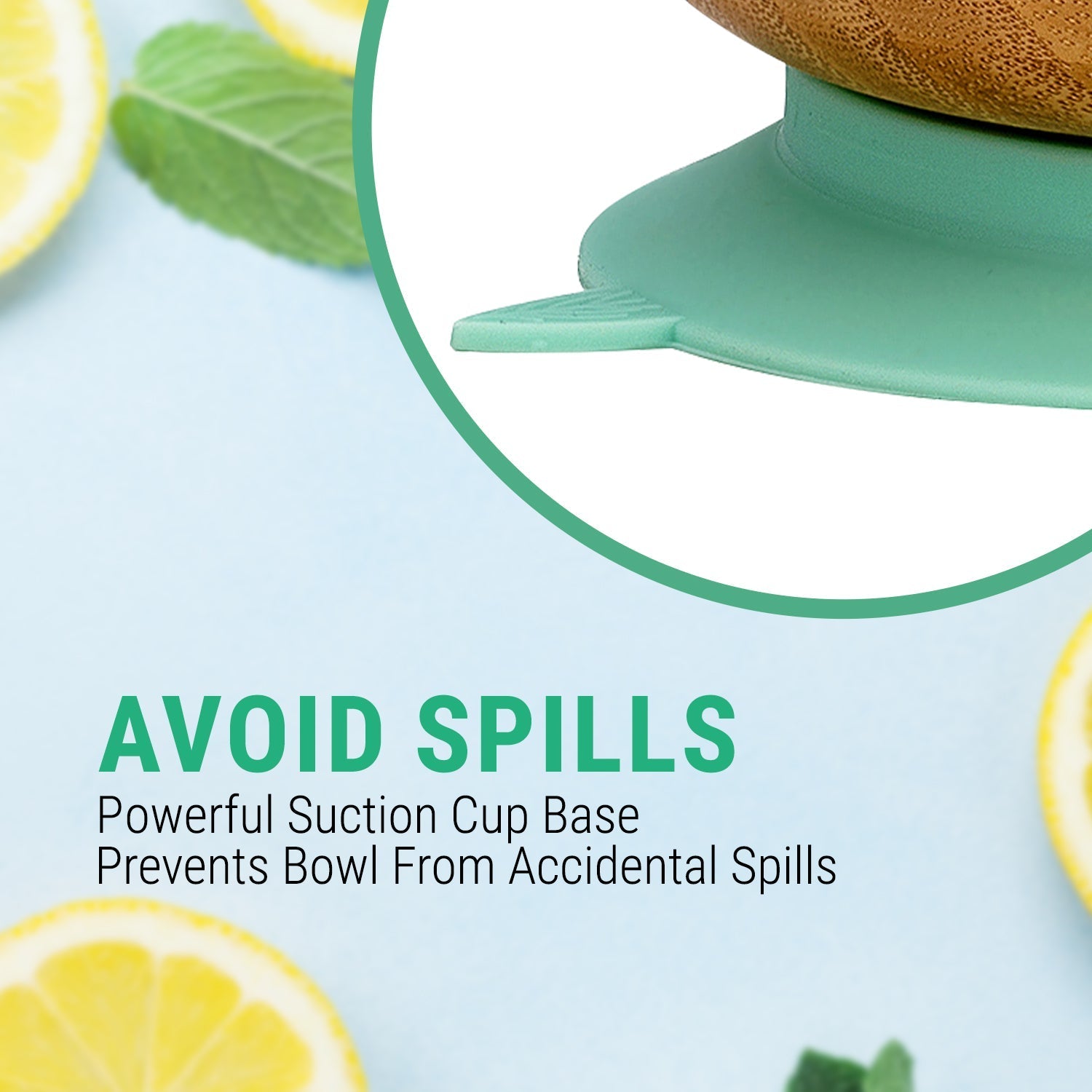 - The Bamboo Bowl has a removable silicone base that suctions onto smooth, flat, non-porous surfaces which helps prevent it from flipping over with eager eaters