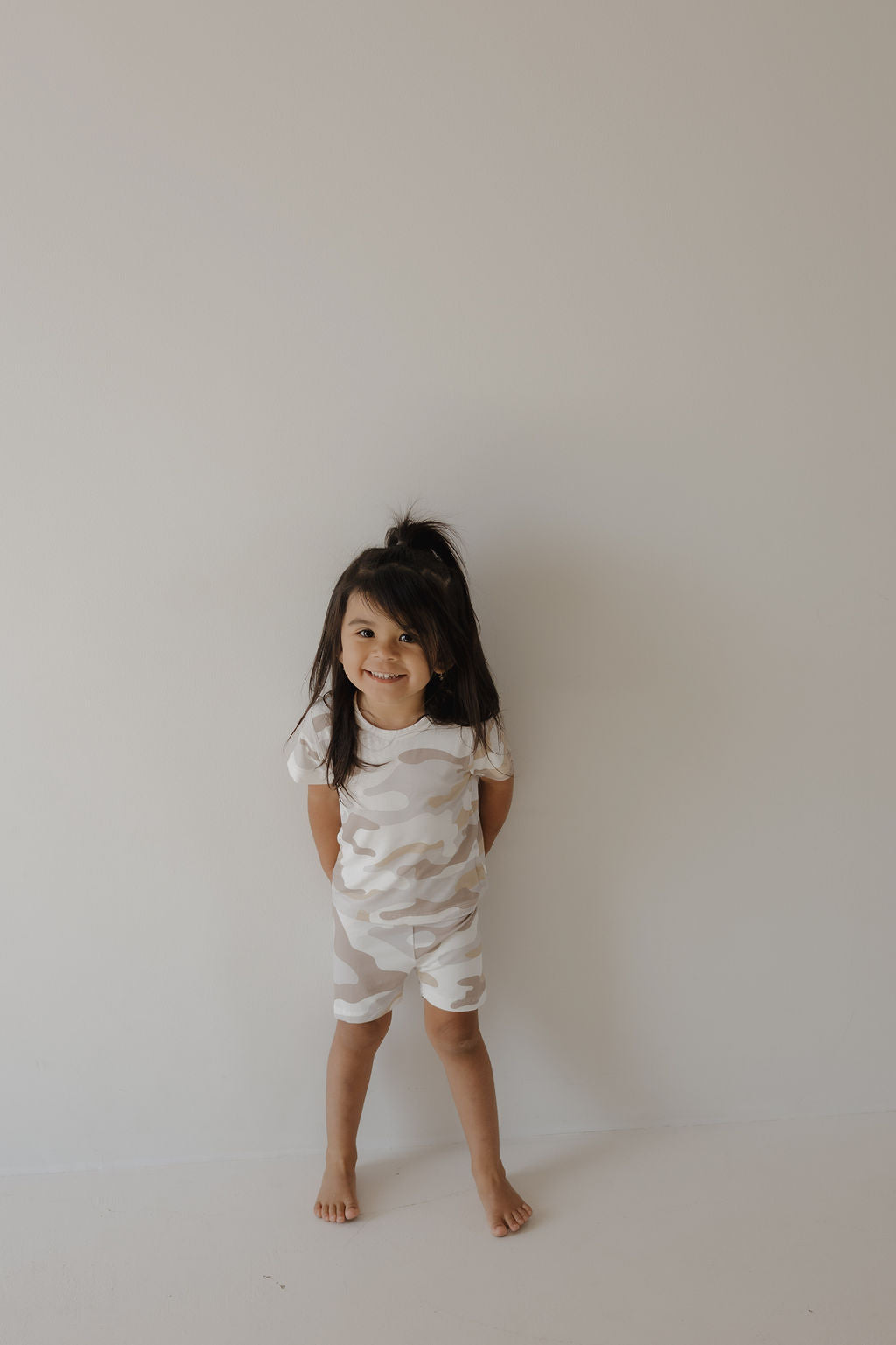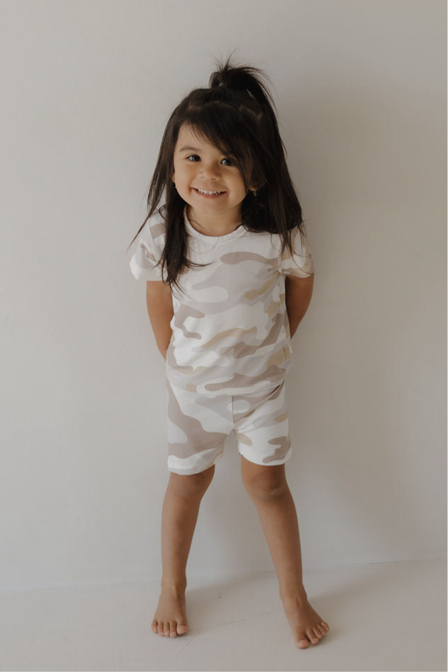 Made of the softest premium bamboo. Durable and well designed your little ones can sleep and play in these cozy pajamas. These sets feature a biker style short and matching top.