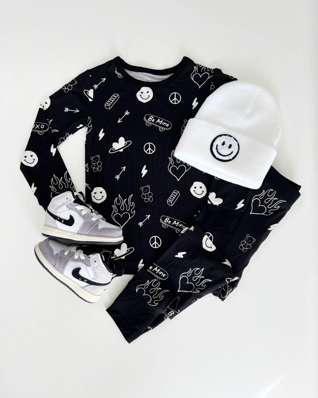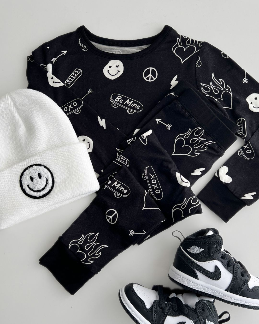 Rad little Valentine! Our bamboo two-piece set is the perfect blend of style, softness, and functionality for your little bundle of joy. Your little one will stay cozy and comfortable, whether it's playtime, nap time, or cuddle time.