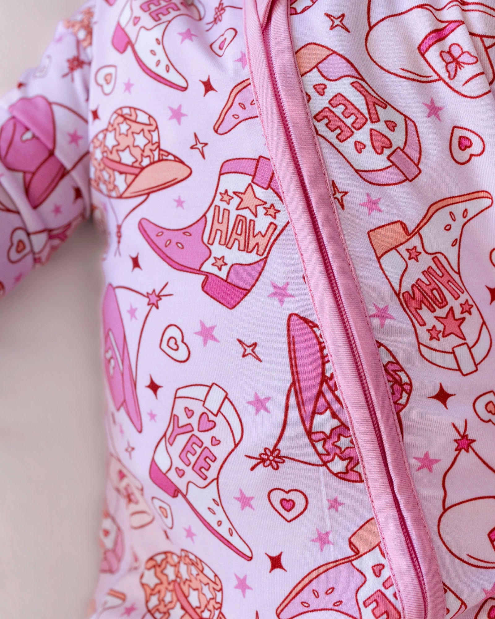 Yeehaw! Your little one will love our Bamboo Zip Romper | Cowgirl!