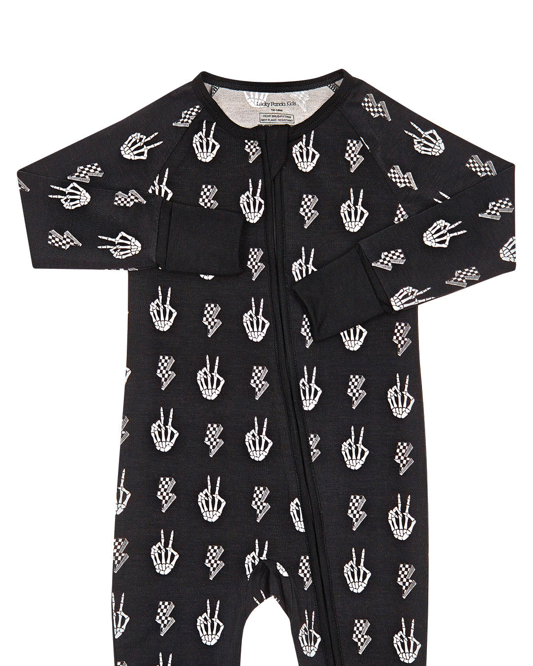 The Bamboo Zip Romper | Skelly Vibes is all tricks, treats, and skeleton vibes—made for the tiniest rebels of spooky season.