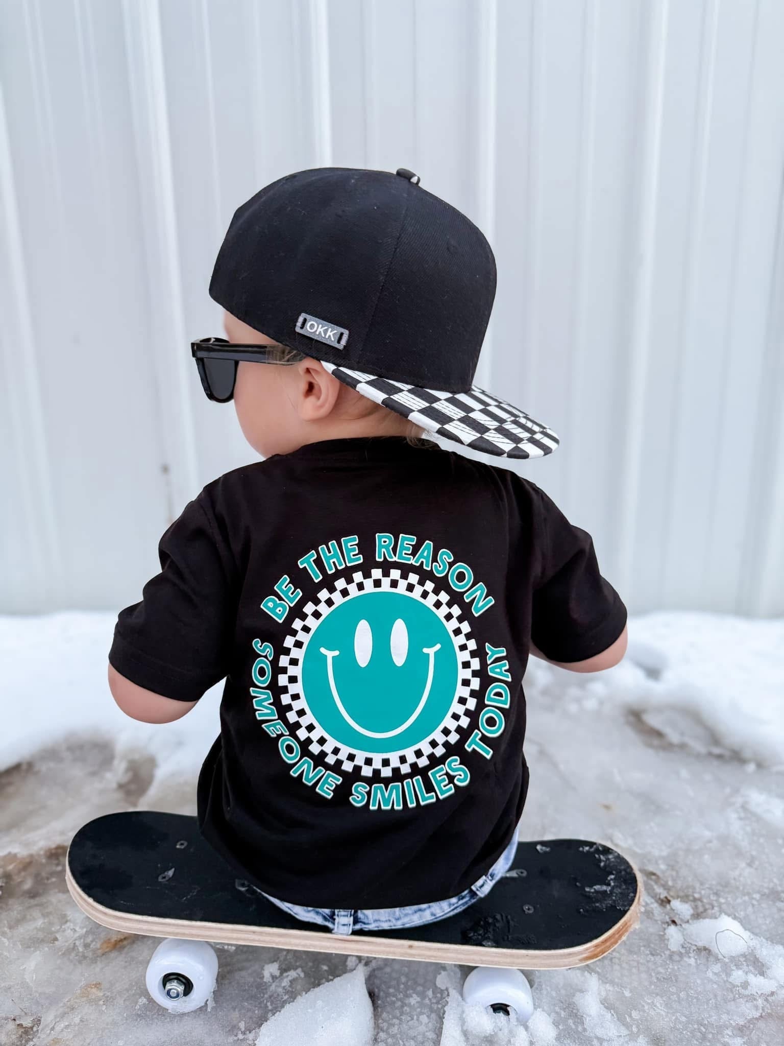 Introducing our “Be the Reason Someone Smiles Today” graphic tee, designed to add a splash of joy and positivity to any child's wardrobe. This delightful tee features a charming smiley face and the uplifting message, "Be the Reason Someone Smiles Today," encouraging kids to share happiness wherever they go.