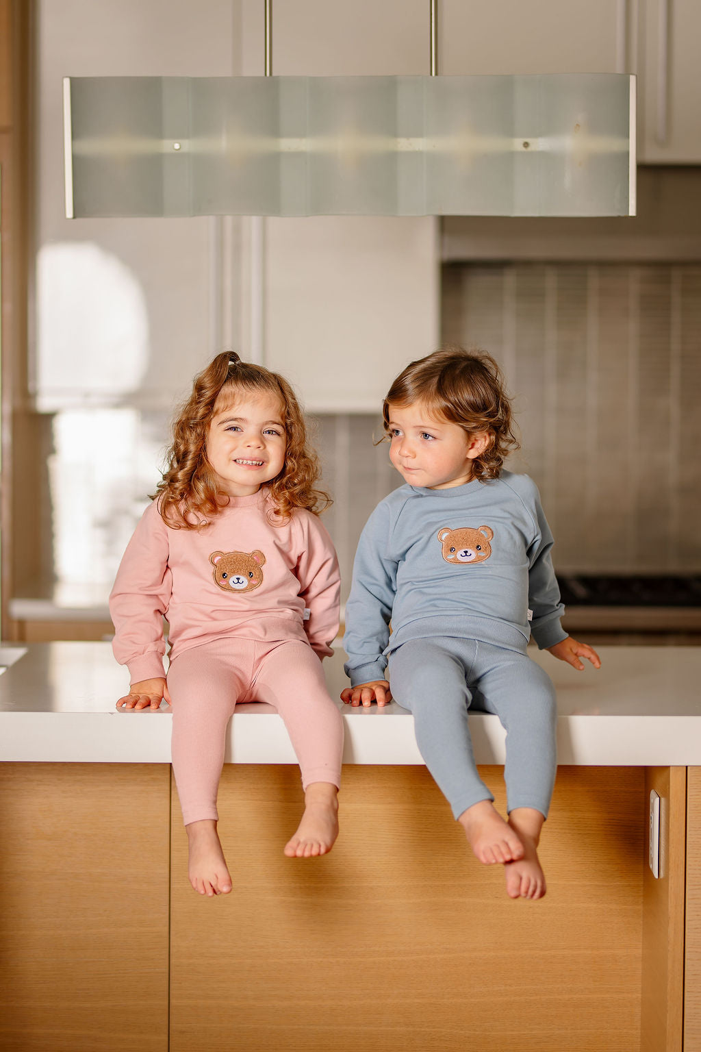 Stay warm and playful in the Bear Sweatsuit in Pink! This cozy French terry set features ribbed leggings and a fun terry bear graphic, making it the perfect cute outfit for chilly winter days. Soft, comfy, and full of charm, it’s sure to brighten up any cold-weather wardrobe!