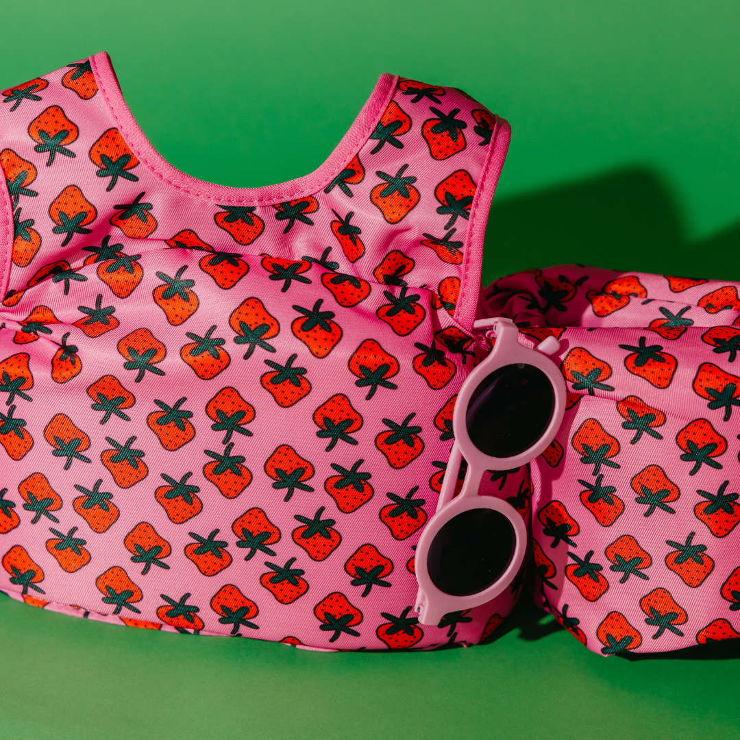 Look no further for your next float for your kids learning how to swim! Give them confidence in the water as they swim alongside you this summer in our Berry Fields Kids Float. Made in a variety of prints and colors these floats are playful yet fashionable. Ditch the cartoons and choose our toddler swim vests with options for boys and girls!