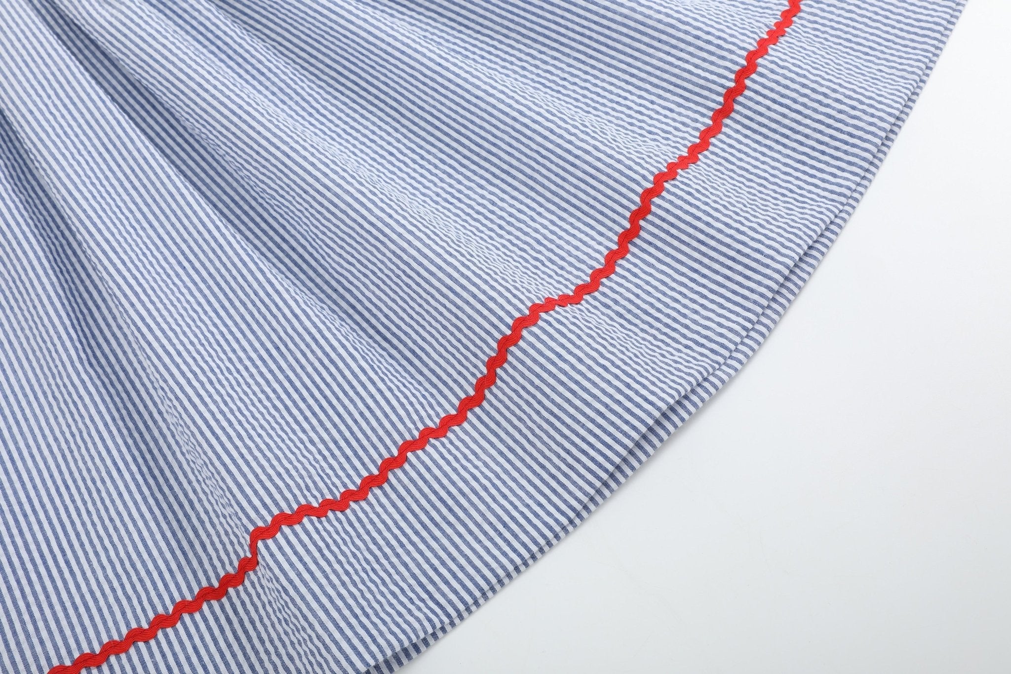 Hit a home run in style with our Blue Seersucker Baseball Smocked Bishop Dress! This classic bishop dress is made from soft blue seersucker fabric and features a beautifully smocked neckline with detailed baseball-themed embroidery—complete with bats, and balls for your little all-star.