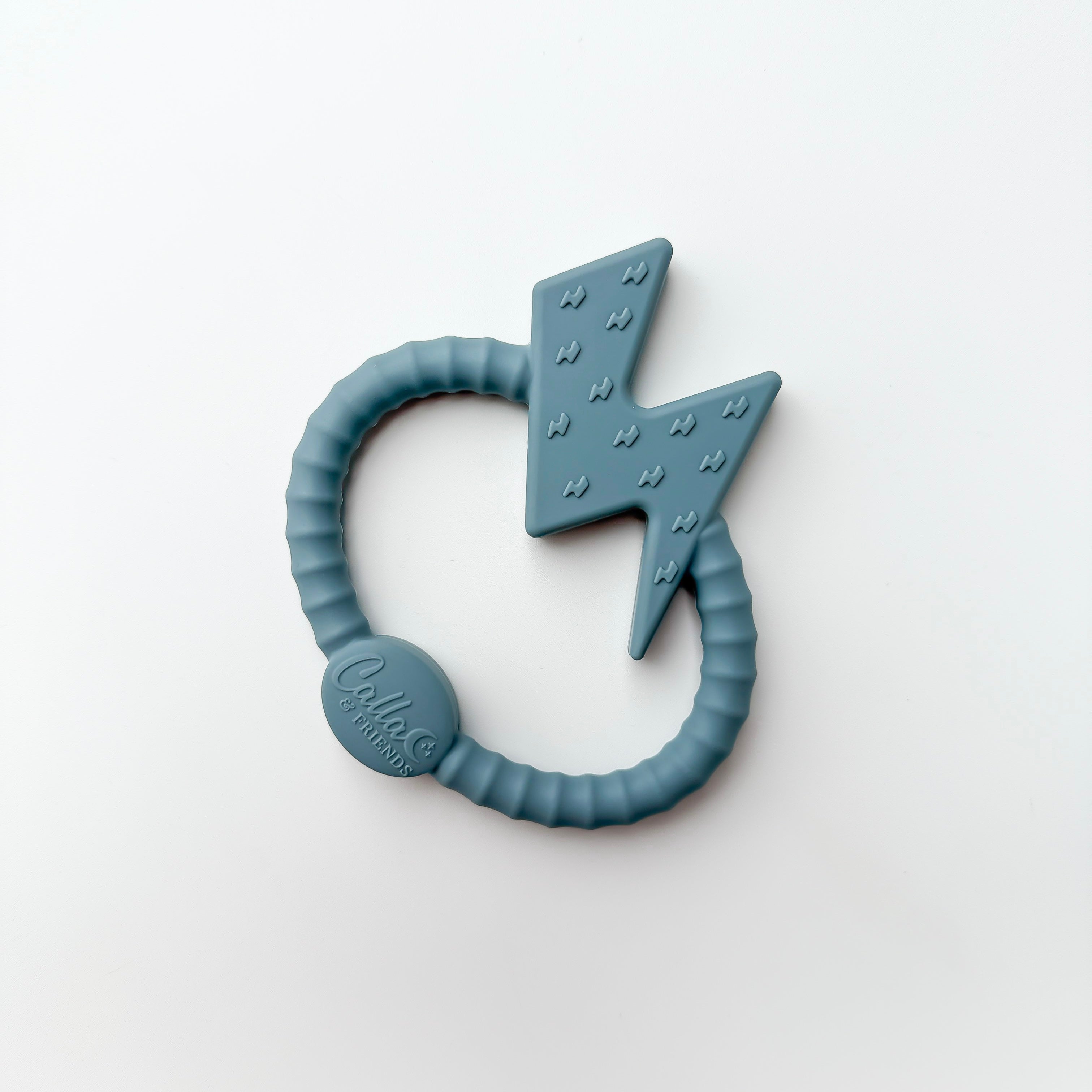 Bolt Silicone Sensory Teether: Lightning Relief for Tiny Teeth. Explore, Soothe, and Look Rad Doing It! Unleash the Power of Safe Teething.